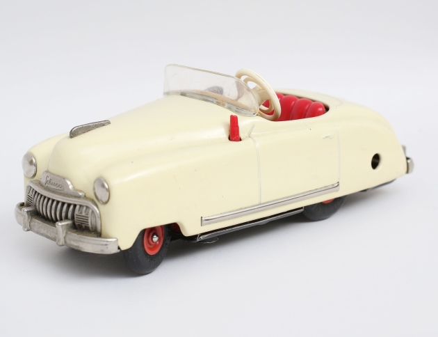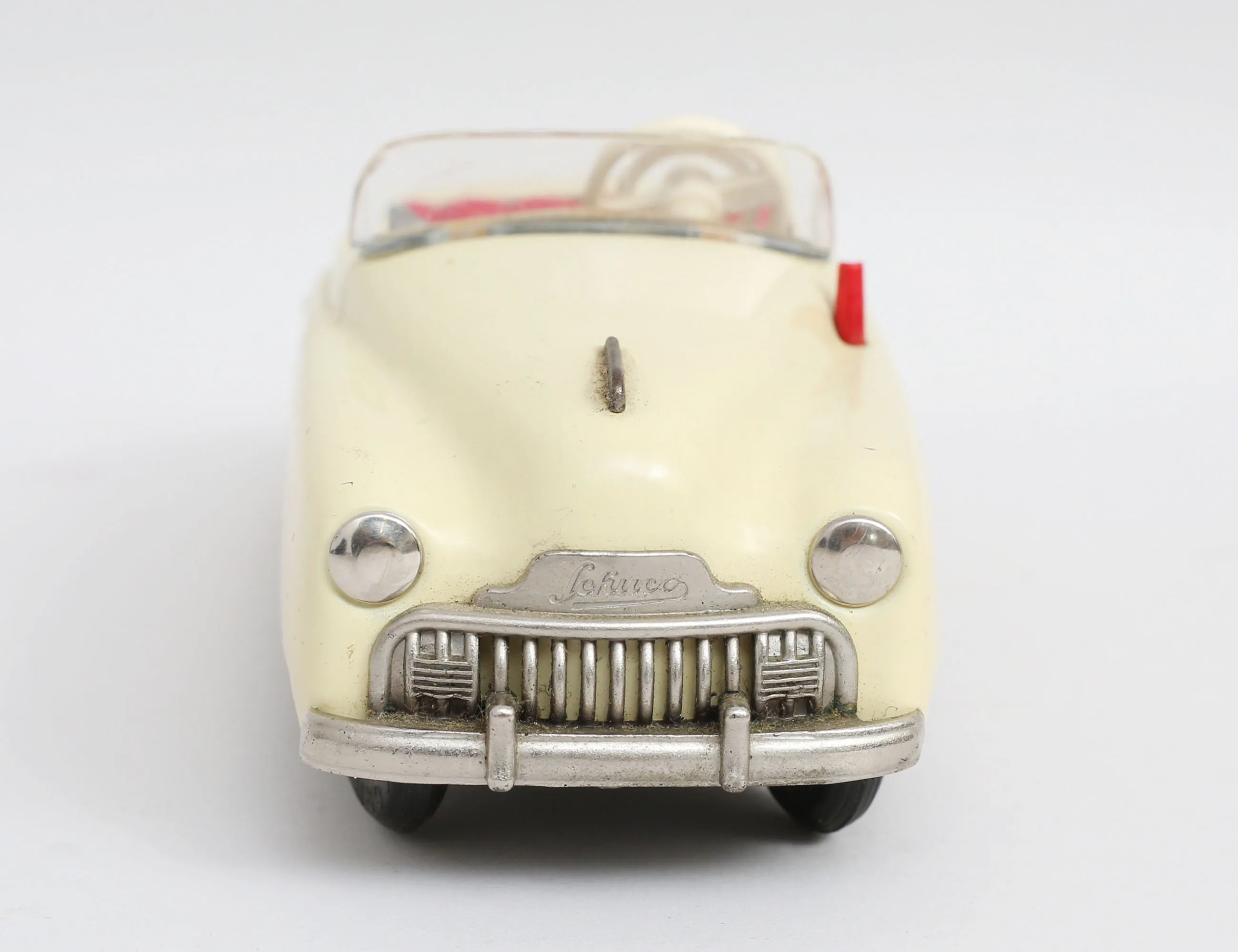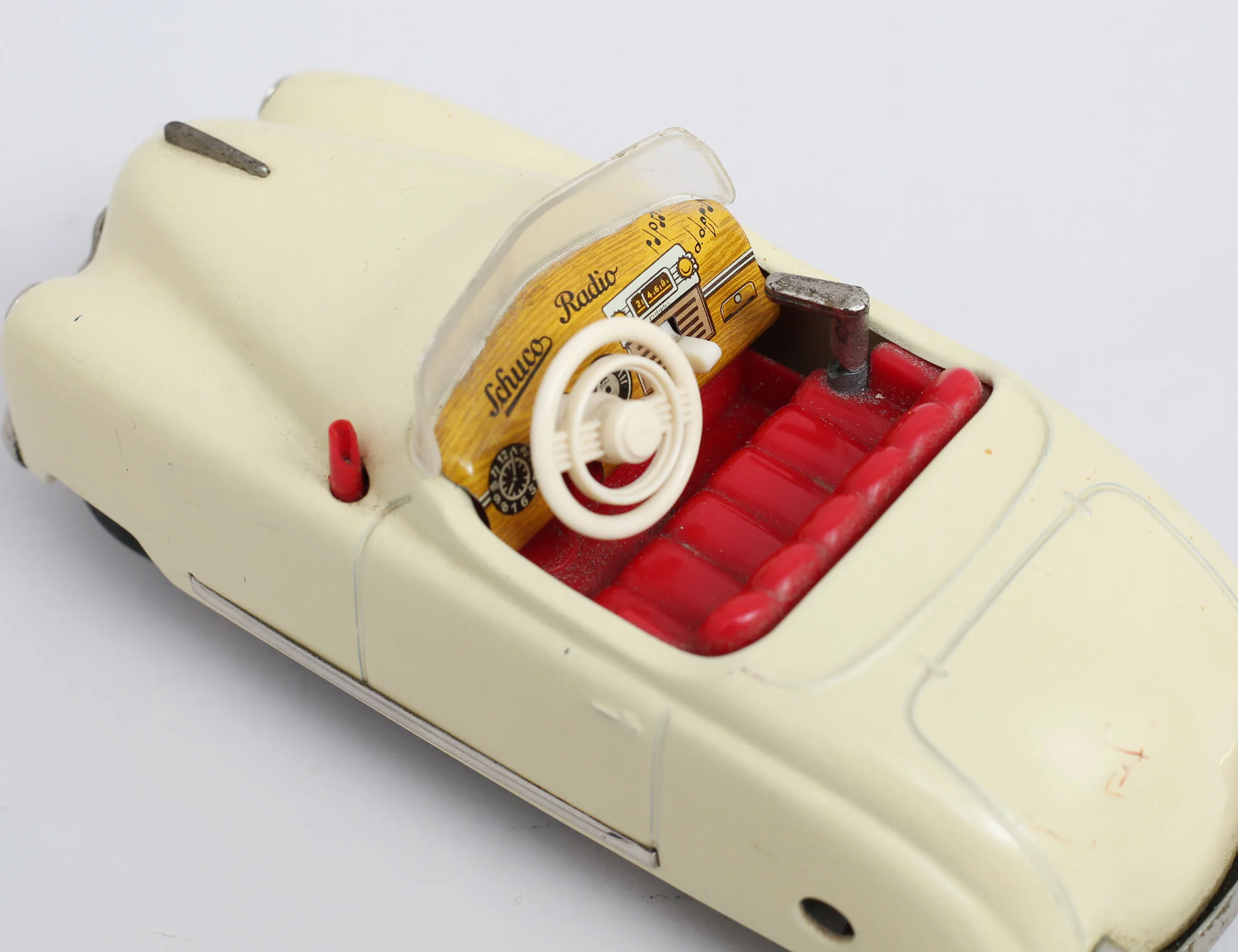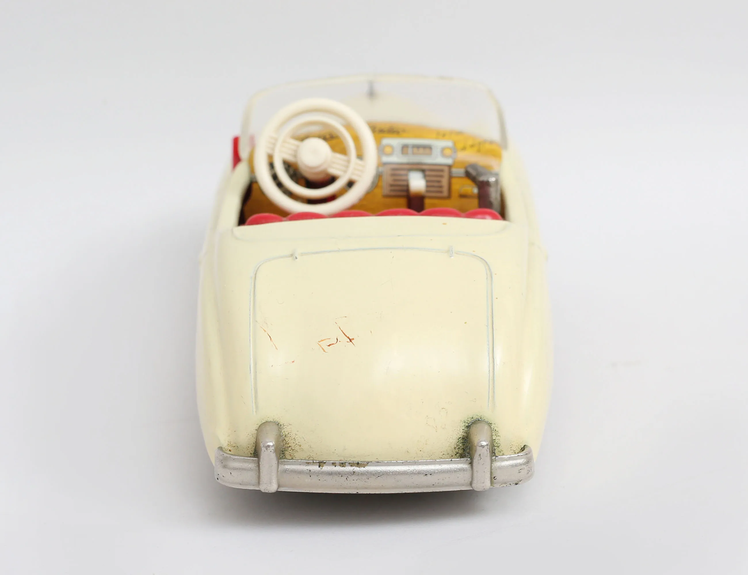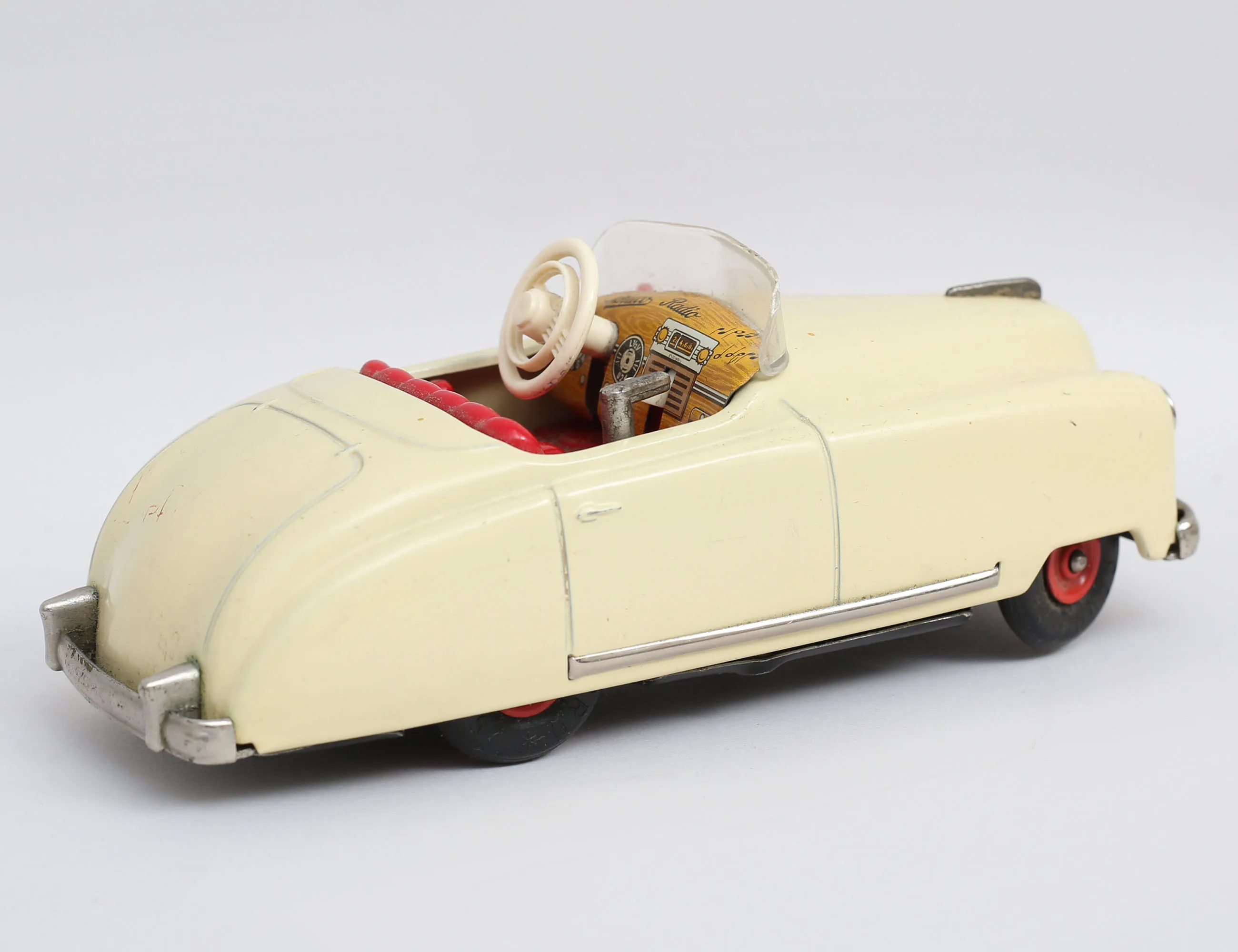 made in US Zone Germany, cremefärgad plåt, speldosa som spelar "Böser Wolf", urverksdriven - nyckel finns, fungerar vid katalogiseringstillfället, längd 16 (smärre bruksslitage)