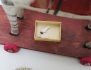 2 dockskåpsdockor sent 1800-tal, höjd 3, häst på hjul tidigt 1900-tal, bemålat trä, höjd 36, bredd 38, samling djur och soldater