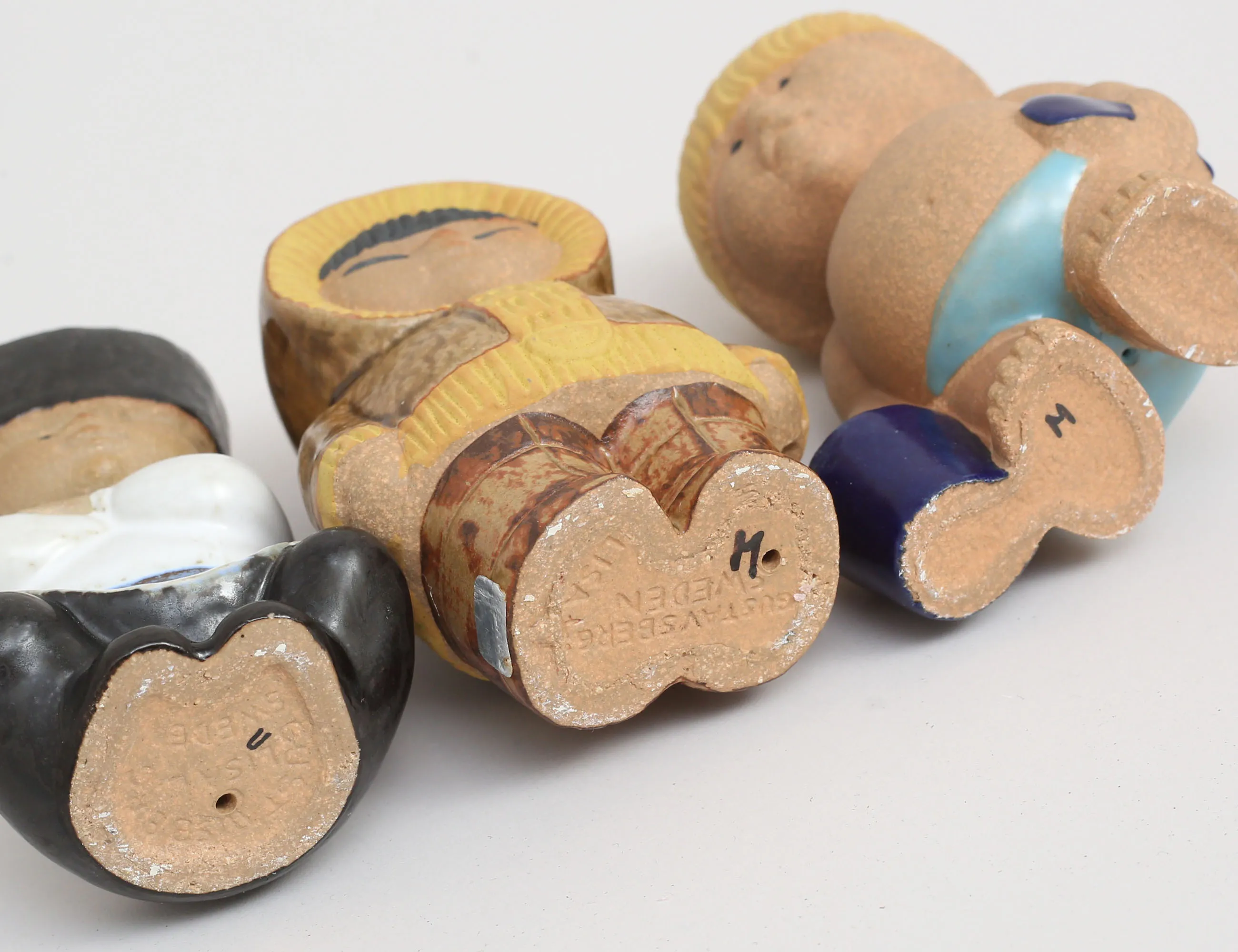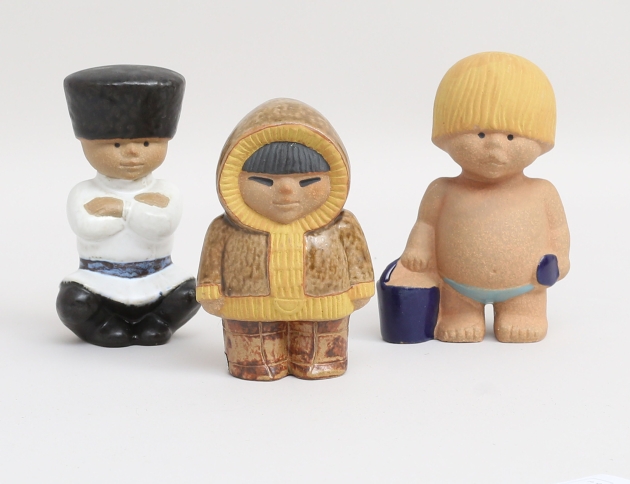 figuriner "Ivan", "Väst" samt "Nord", ur serien "Världens Barn", delvis glaserat stengods, stämpelmärkta en med etikett, höjd 12/13 (3)