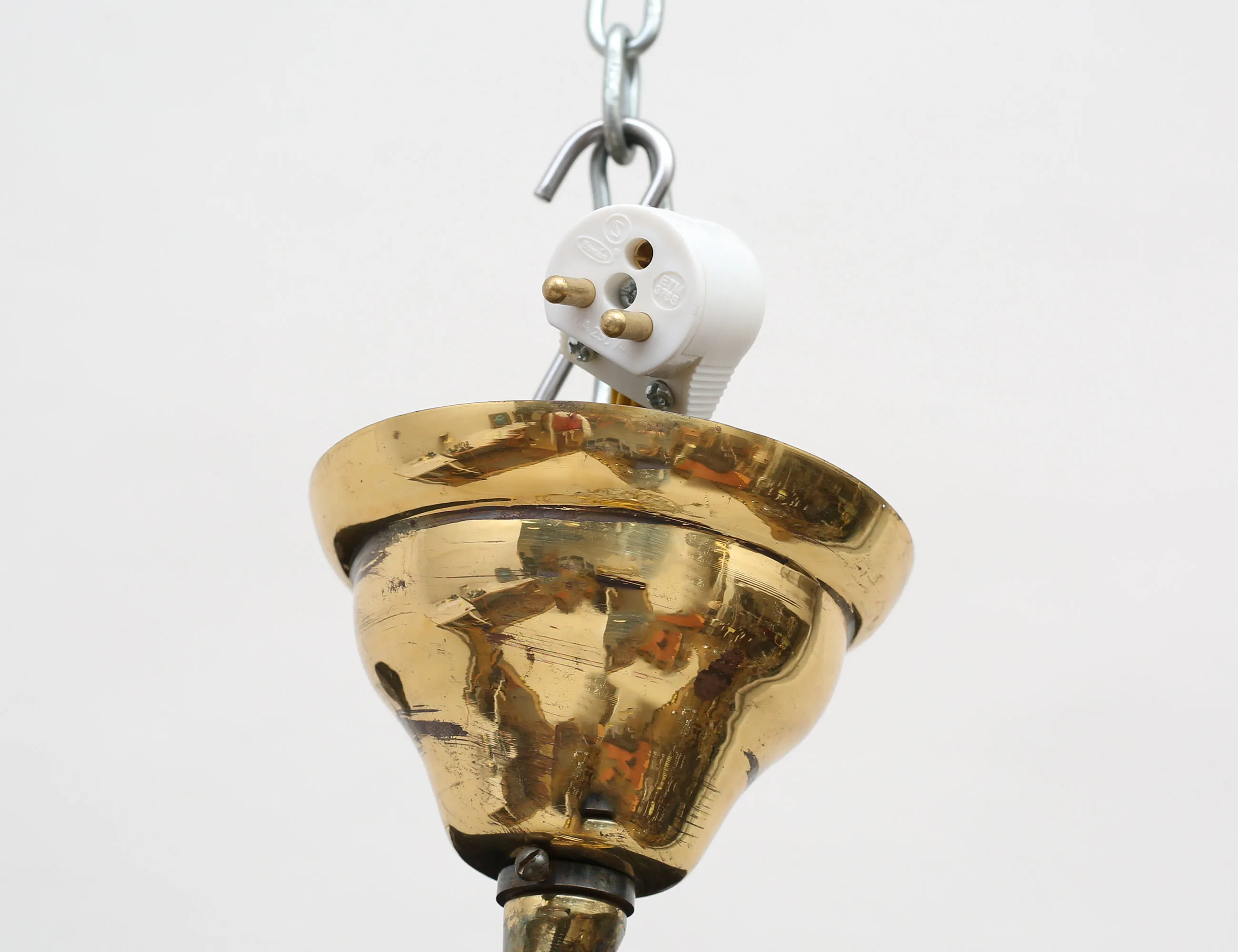 stomme i ornamenterad mässing, för sex ljus, fasettslipade olikformade prismor, piggbotten, höjd 70 (50), diameter 65