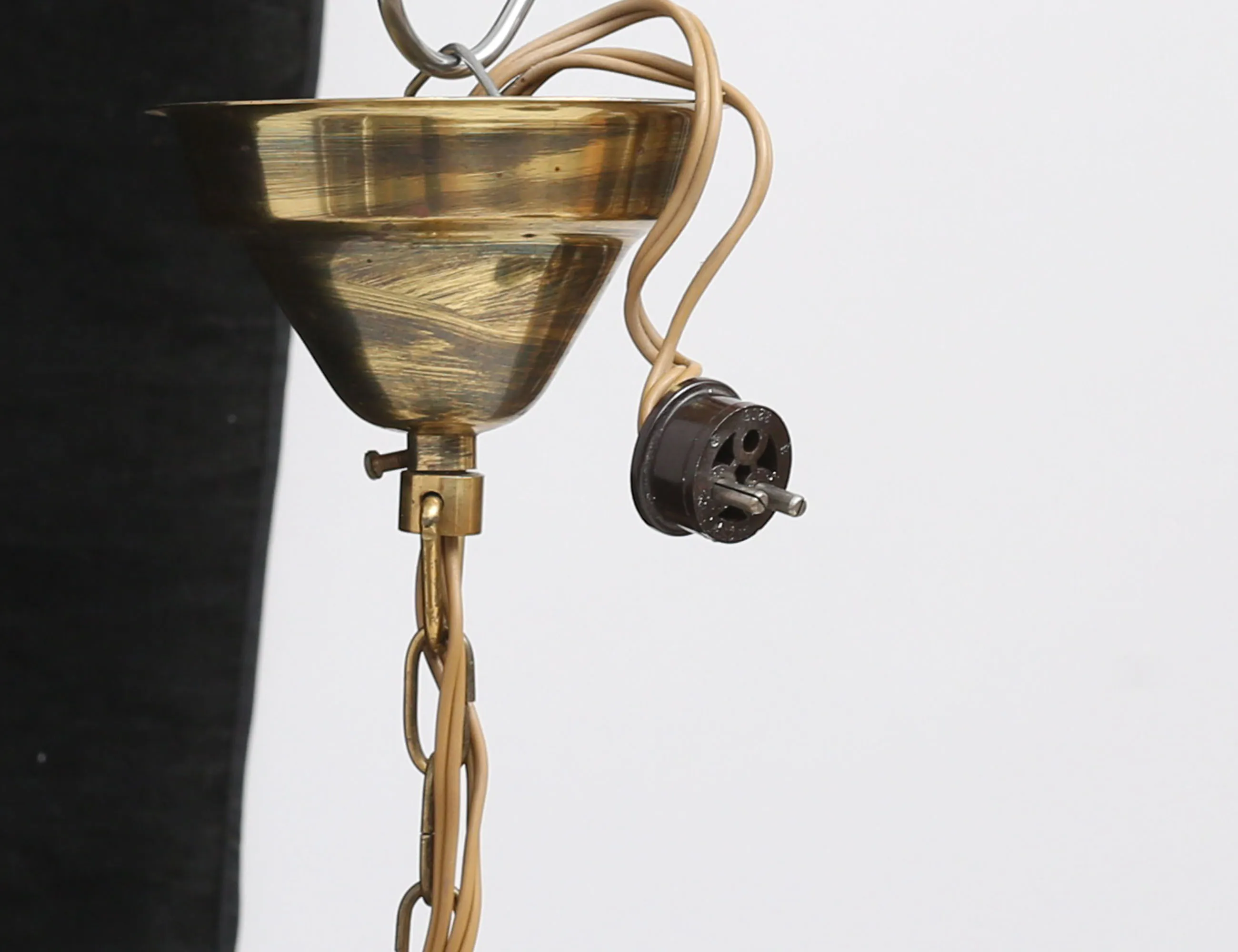 stomme i genombruten mässing, för fem ljus, fasettslipade olikformade prismor, piggbotten, höjd 75, diameter 45