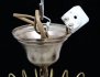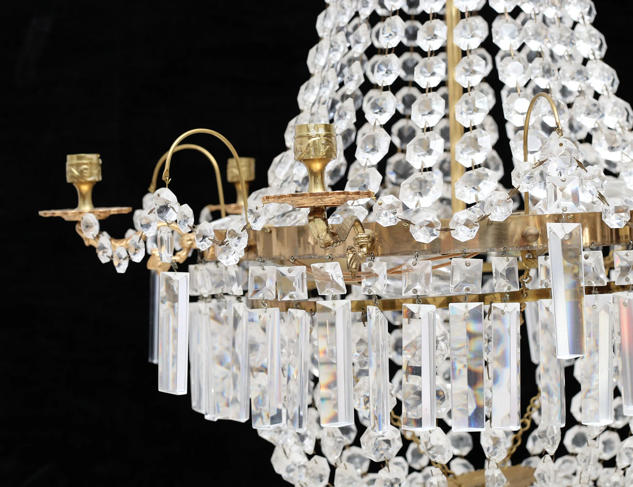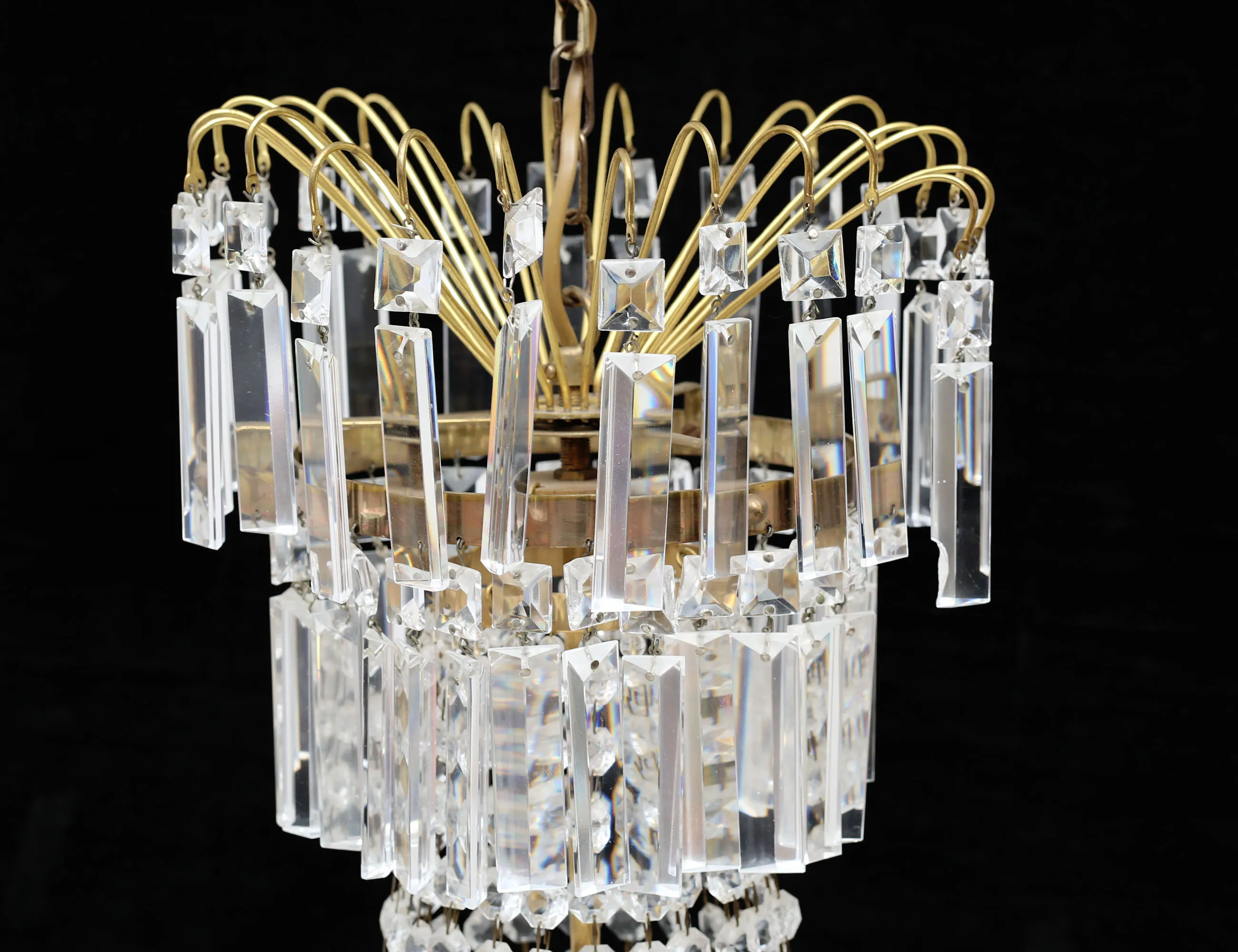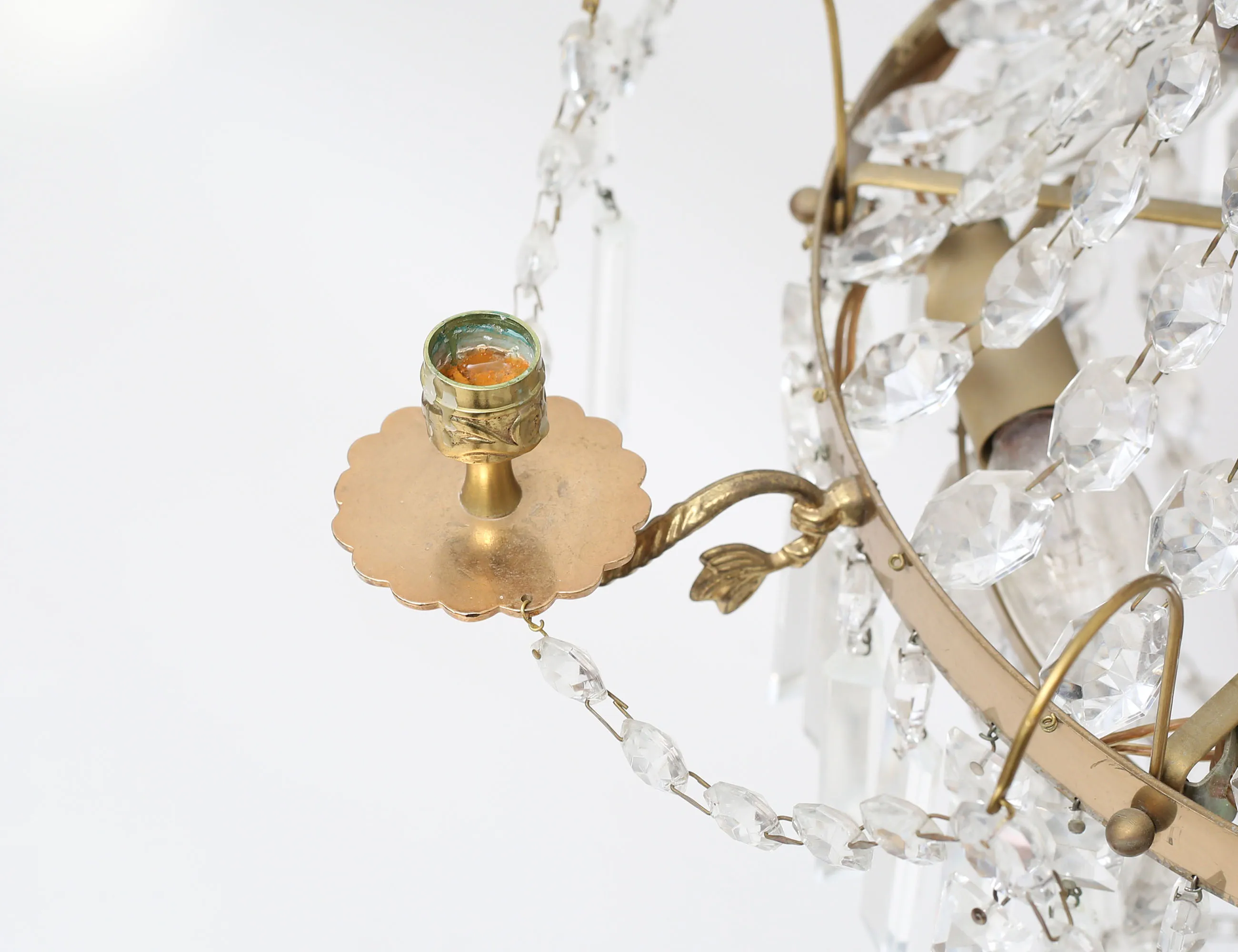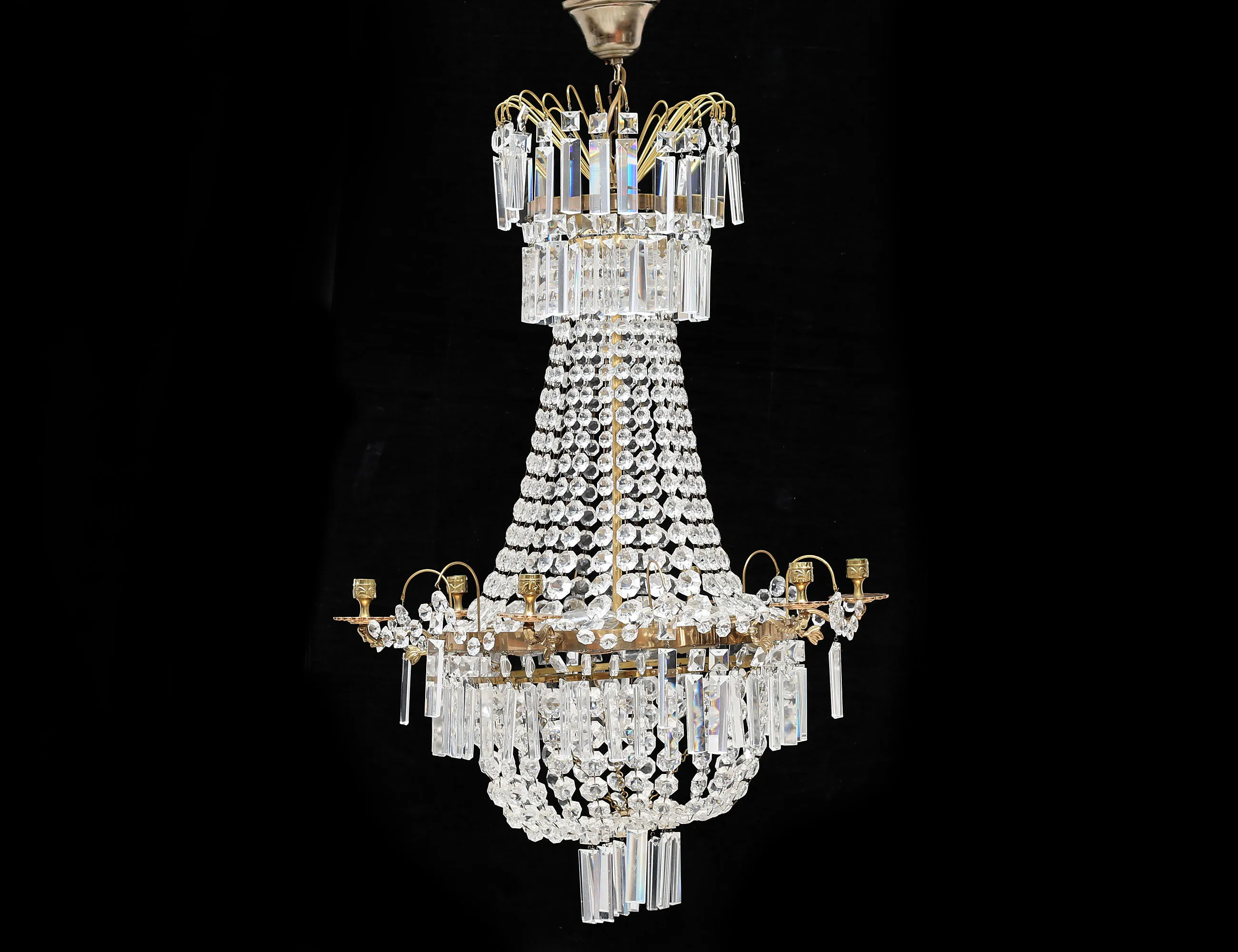 stomme i ornamenterad mässing, för sex ljus, fasettslipade olikformade prismor, höjd 90, diameter 55
