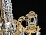 stomme i förgylld genombruten mässing, stavformade och övriga fasettslipade prismor, 6 ljusarmar, höjd 100, diameter 65