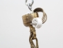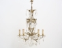 1900-talets mitt, ornamenterad stomme i mässing, dekor av bla. girlander och löv, fasettslipade prismor, höjd 73 (92), diameter 58 (lösa ljushattar medföljer)