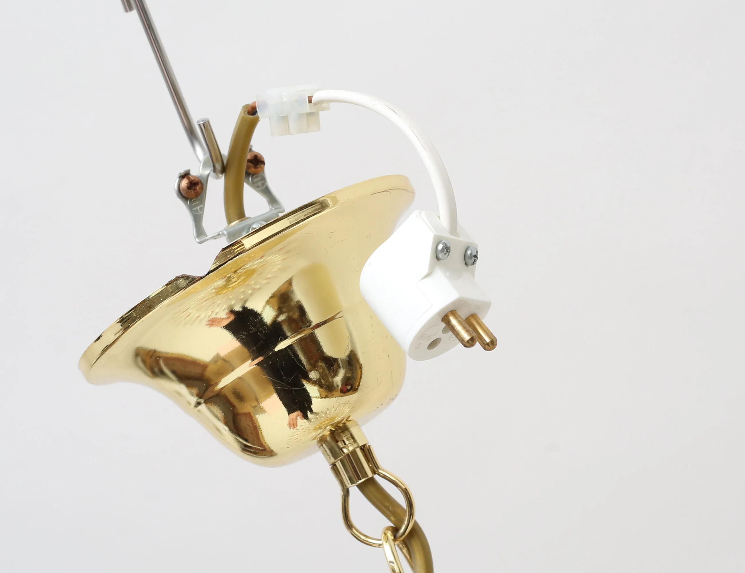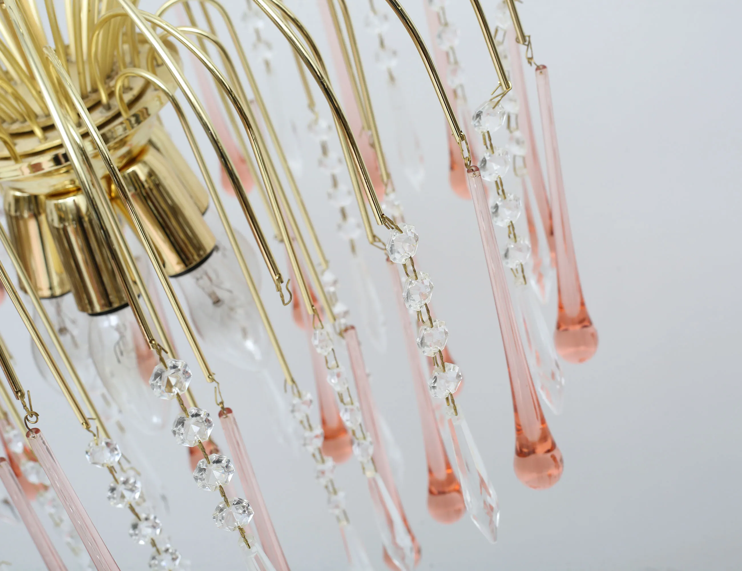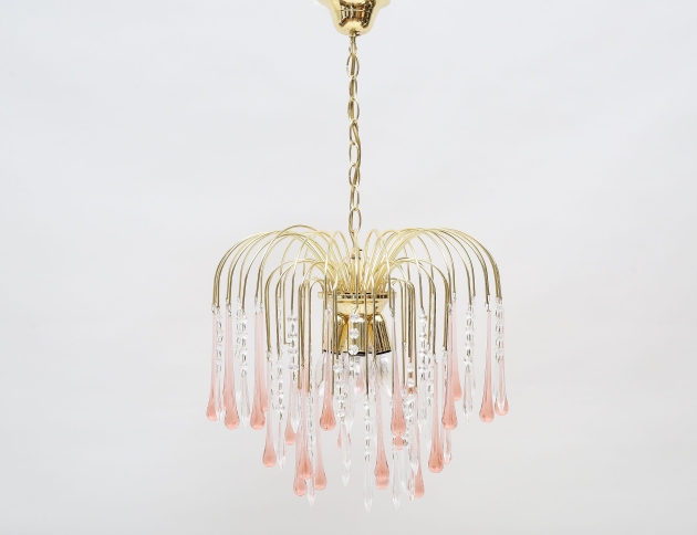 förgylld stomme, olikformade delvis rosatonade prismor, höjd 75, diameter 40 (enstaka prismor saknas)