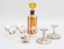 svenska importstämplar, höjd 9,5 (fyllda bottnar), saltkar silver med glasinsats, höjd 6,5, likörservis 6 delar Hovmantorp, karaff med silvermontage, vikt 35 gram exklusive ljusstakar och insats