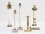 varav 2 omgjorda från bordsfotogenlampor c.1900, alabaster och mässing/bronserat gjutgods, höjd 45/38, en tidigt 1800-tal, mässing, höjd 23, 2 stycken sent 1900-tal, betong, mässing och bemålad metall, höjd 32/41