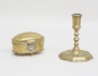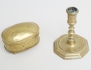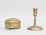Sverige 1700-tal, höjd 13, skrin Sverige c.1800, tre kulfötter, höjd 6,5, bredd 10,5 (gångjärn med lagning, ljusstakens gänga med tennförstärkning) (2)