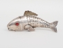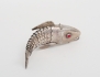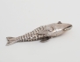 troligen 1800-tal, i form av fisk, ledad stjärtdel, ögon i rött glas, stämplad 13 1/4 Lod samts, vikt ca 35 gram, längd 10,5