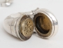 London 1872, i form av horn, genombruten och förgyllt inre doslock, märkt Thornhill, längd 10, brevvåg silver, Birmingham 1904, viktskala på benimitation, höjd 8, vikt ca 155 gram (2) (slitage)