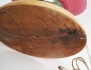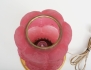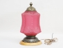rosatonad glaskupa, mässing, senare monterad till bordslampa på rund träsockel, elektrifierad, höjd 44