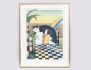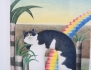 färglitografi 192/250, komposition med katten Nisse, palmer och pensel, signerad, 67x50, rammått 82x64 (något gulnad)