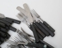 50 stycken, 1800-talets första hälft, tretenade gafflar, matbestick 38 stycken, 1800-talets andra hälft, tretenade gafflar, matbestick 6 stycken c.1900, samtliga trähandtag och kolstål
