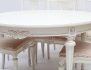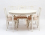 Alsterbro Möbeltillverkning 1900-talets mitt, 6 stolar samt bord med 3 iläggsskivor, träskuren dekor, bemålad med förgyllda detaljer, lösa stoppade sitsar, brickmärkt, höjd 73, diameter 110, total längd 230 (bruksslitage/färgavskav)