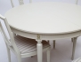 4 stolar samt bord med 2 iläggsskivor, bemålad, lösa stoppade sitsar, höjd 73, diameter 110, total längd 210 (smärre bruksslitage)