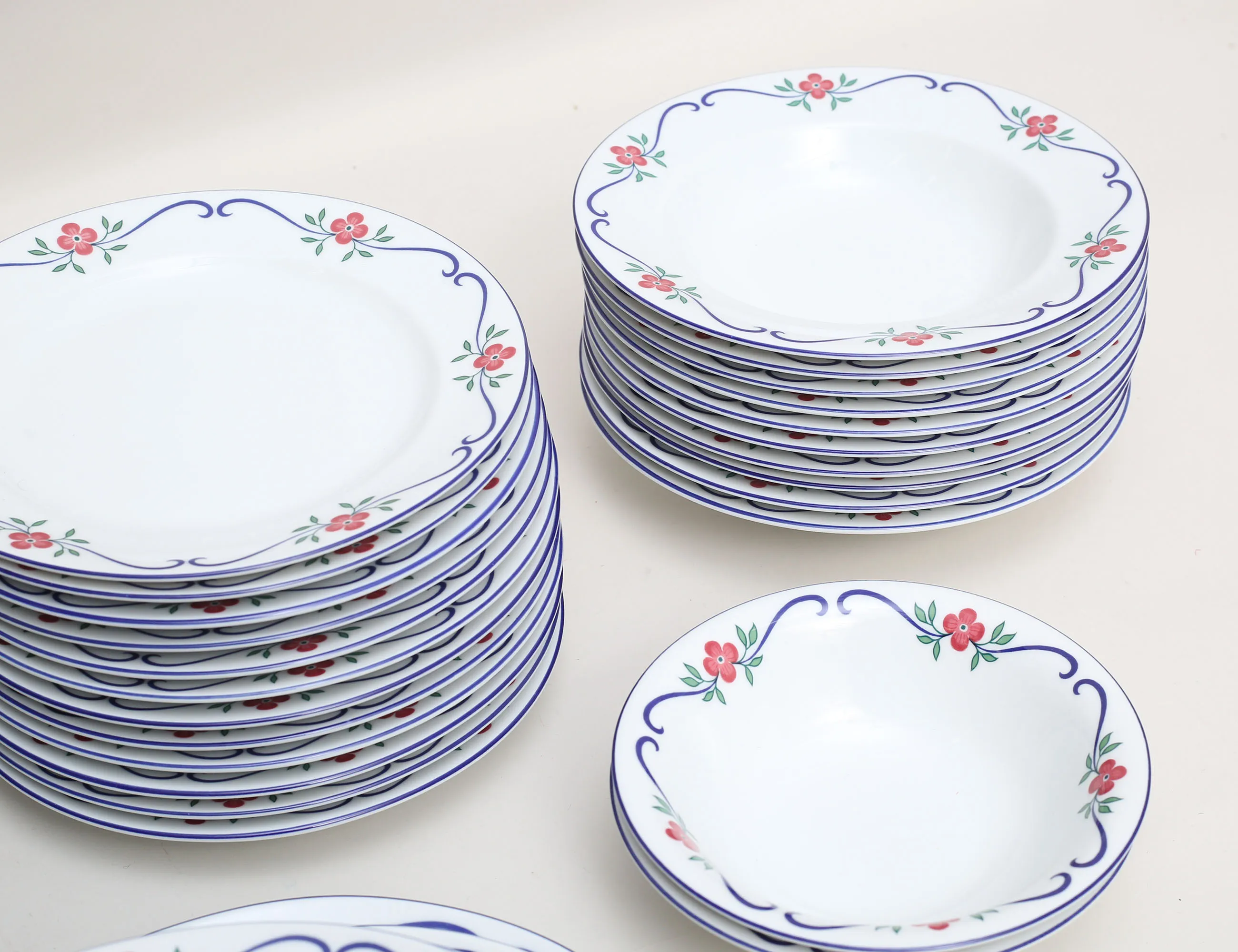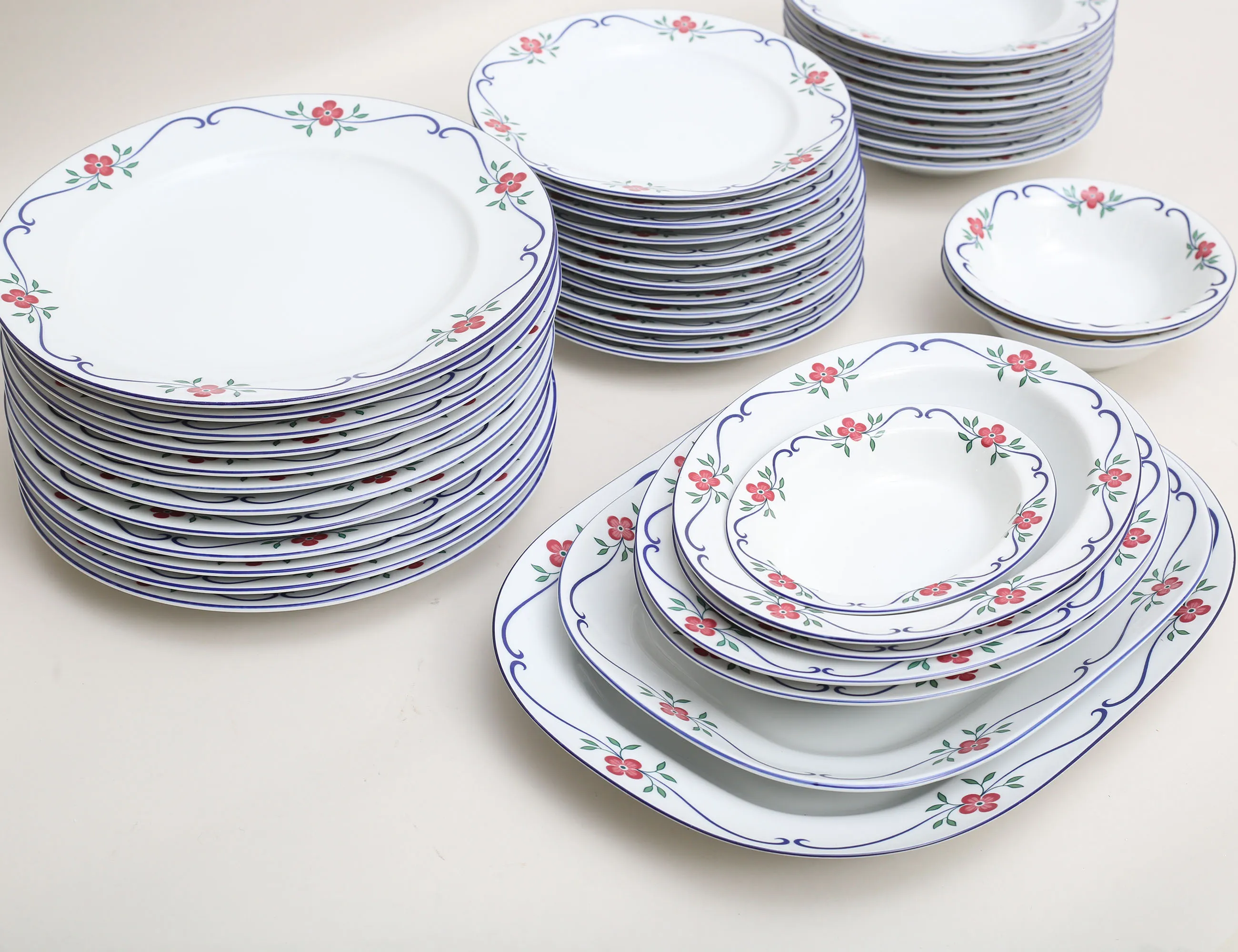 design Pia Rönndahl Rörstrand, 12 mattallrikar, 12 förrätt, 12 djupa, uppläggningsfat m.m., diameter 20,5/26,5