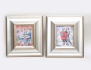 2 oljemålningar på pannå, "De förälskade humrarna" signerad 1996, även signerad atergo mars 1996, "På fruset vatten" signerad även atergo december 1995, 14,5x12,5, rammått 28x25