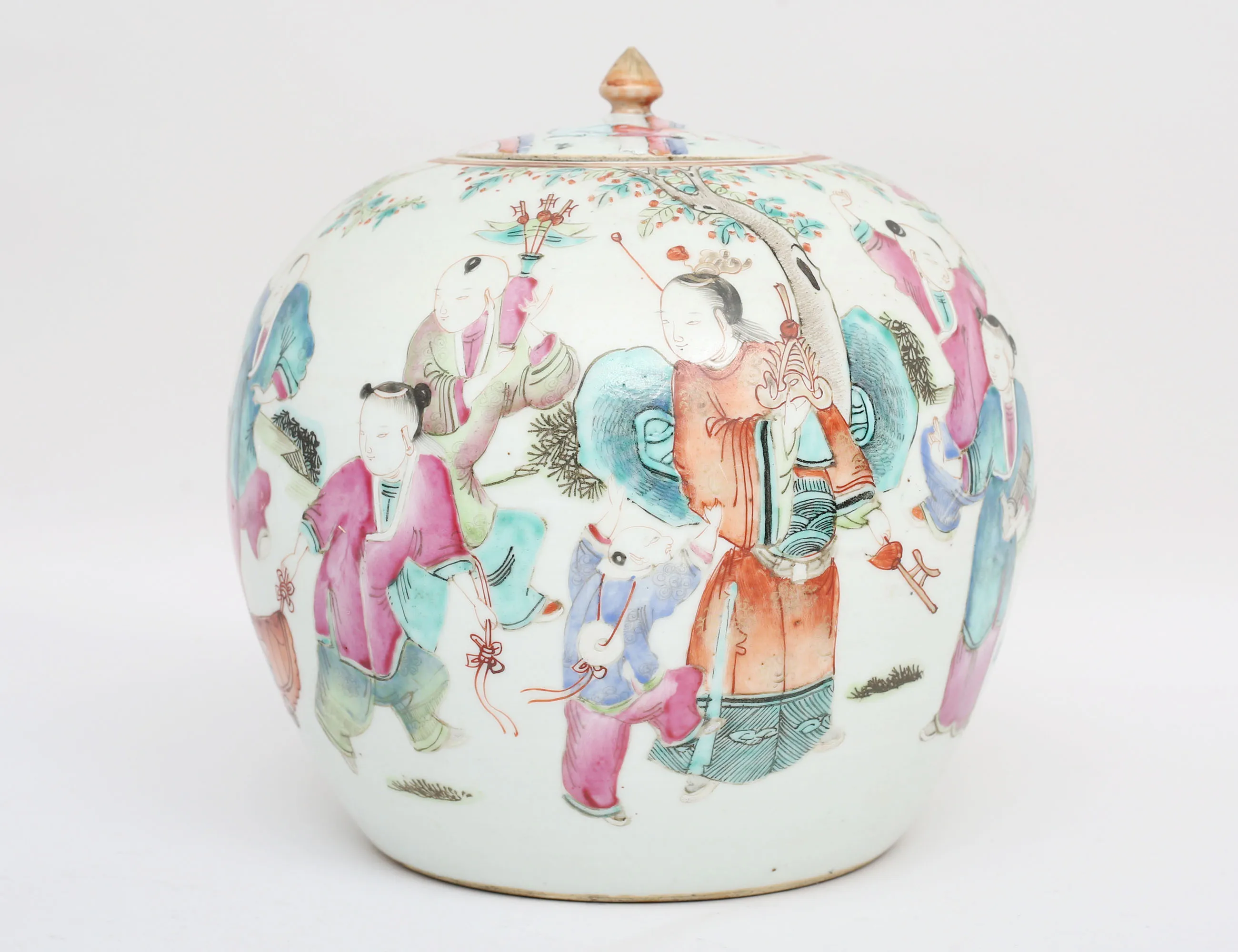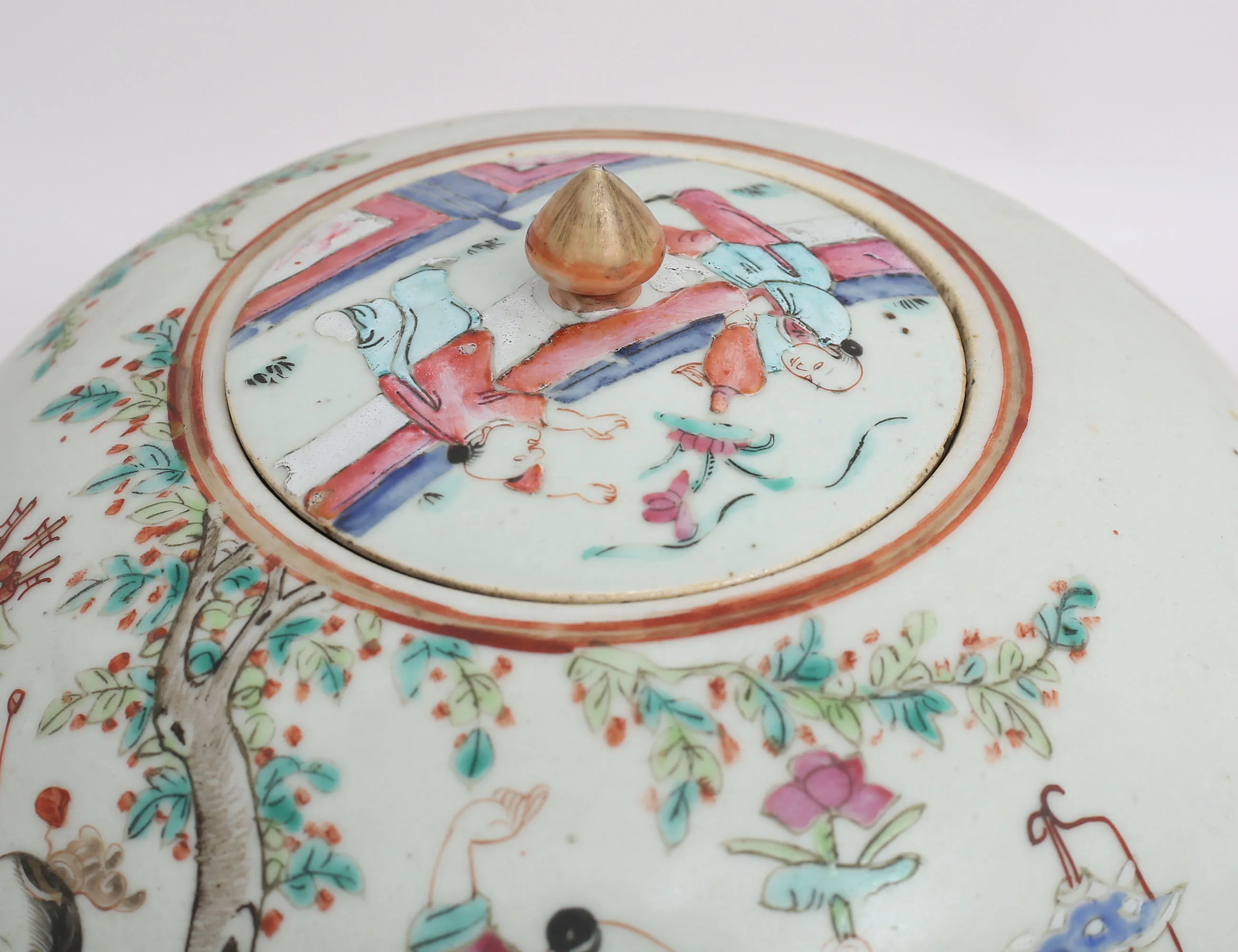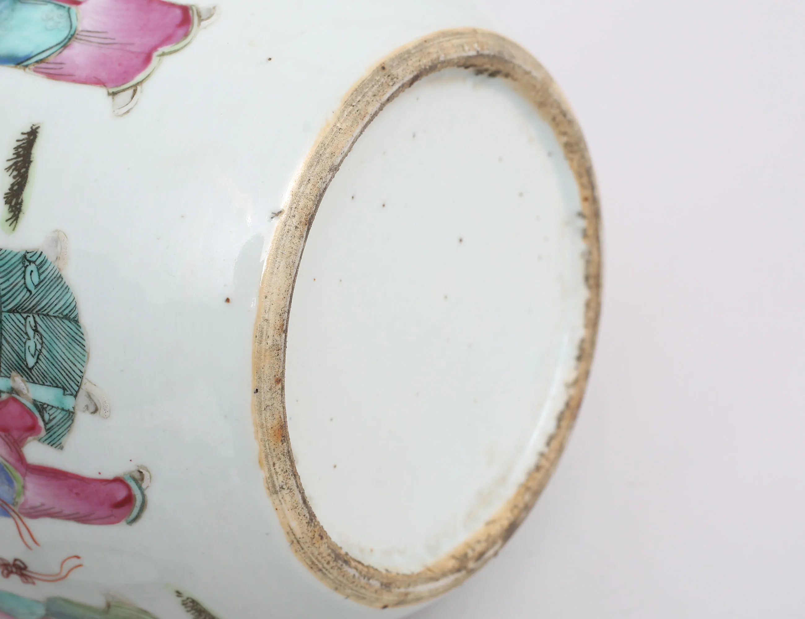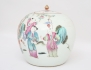 sen Qing c.1900, polykrom emaljdekor av figurscener, höjd 22 (lockknopp med micronagg, invändiga stjärnsprickor i glasyren)
