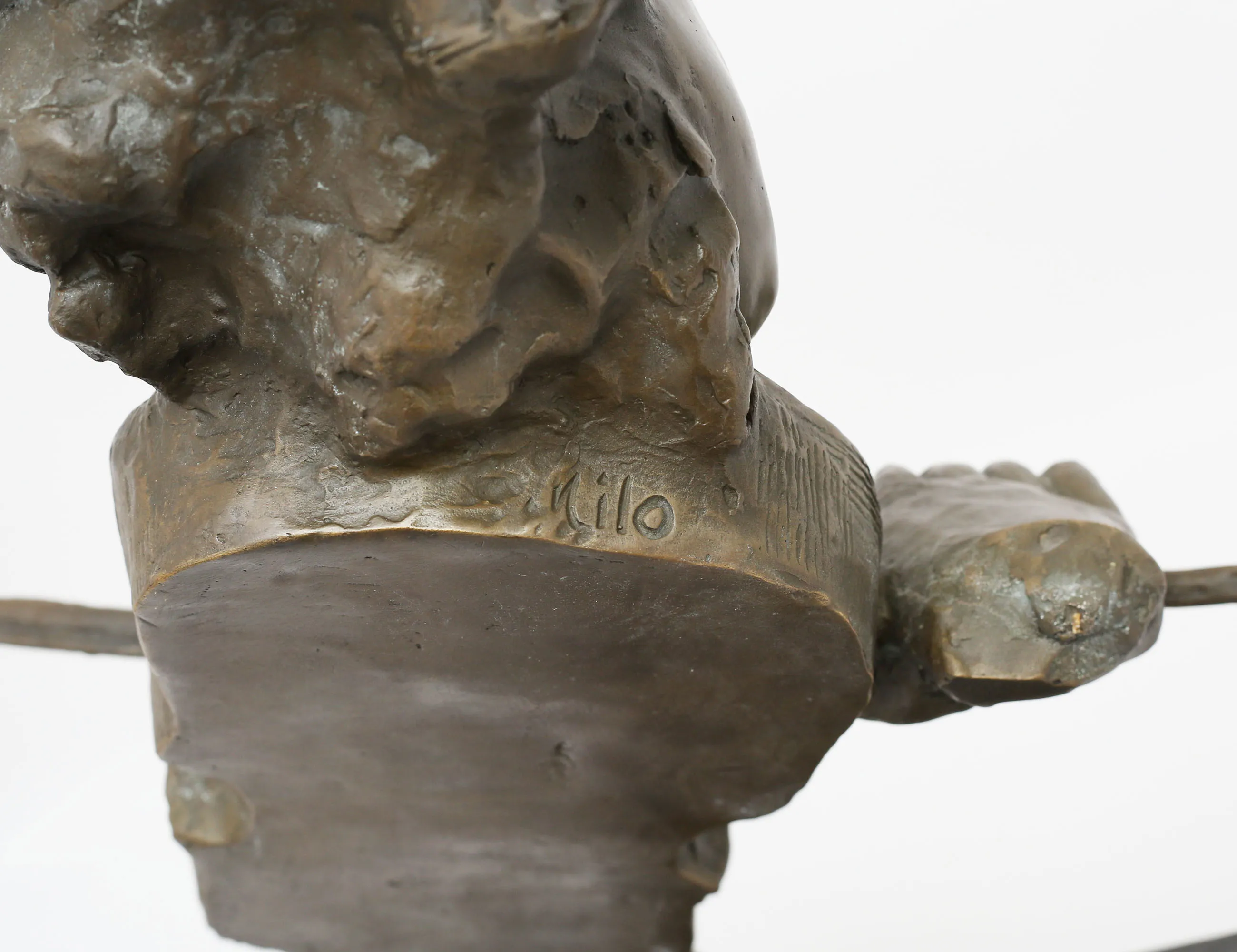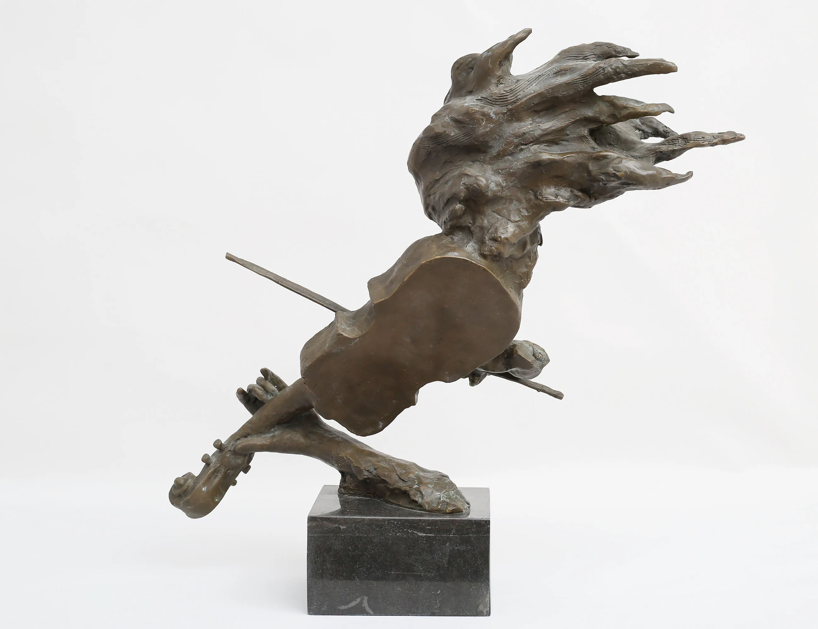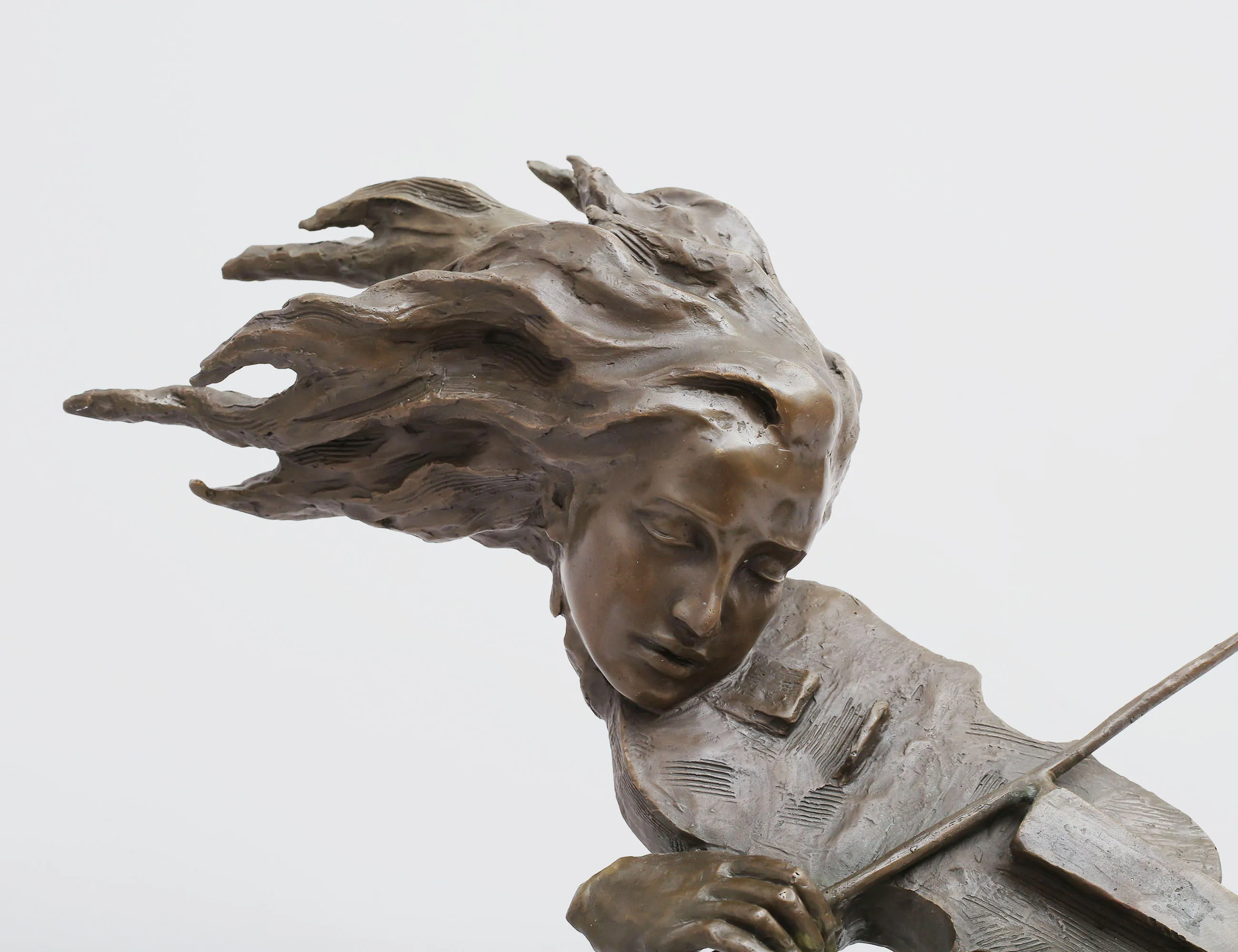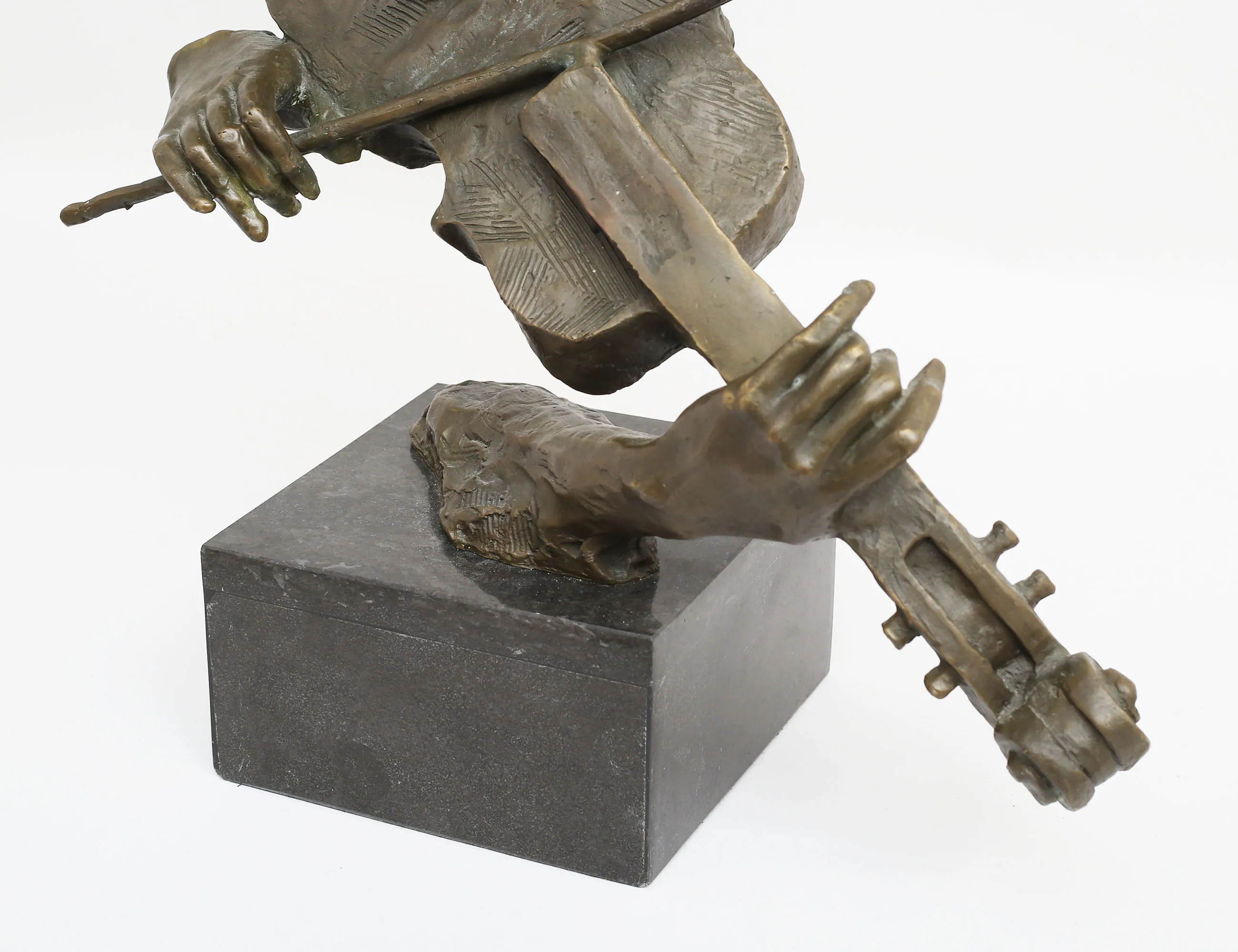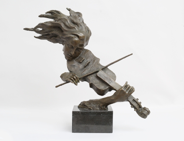 Portugal,skulptur i form av fiolspelande kvinna, patinerad brons, monterad på stenfundament, signerad Milo, höjd 59, bredd 55x22