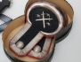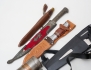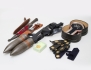 epoletter 1 par, 7 axelklaffar med knappar och märken, märken 1 par, tre kronor under krona, polerad mässing, 2 projektiler, dolk Inox längd 31, kniv i läderfodral "Frosts" längd 22, prydnadsdolk i balja längd 30, dolk i läderfodral "Hallingen" Norge