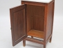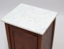 betsad ek, dörrblad med träskuren dekor, dragring i mässing, lös vit marmorskiva, höjd 76, bredd40, djup 34 (hyllplan samt delar av bottenskiva saknas)