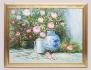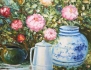 oljemålning på duk, blomsterstilleben - rosa pioner med krus, signerad Baron, 90x120, rammått 107x37