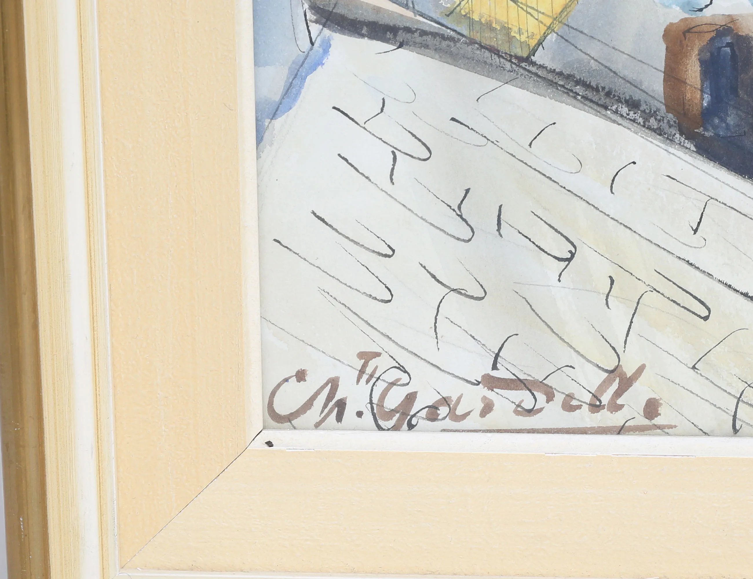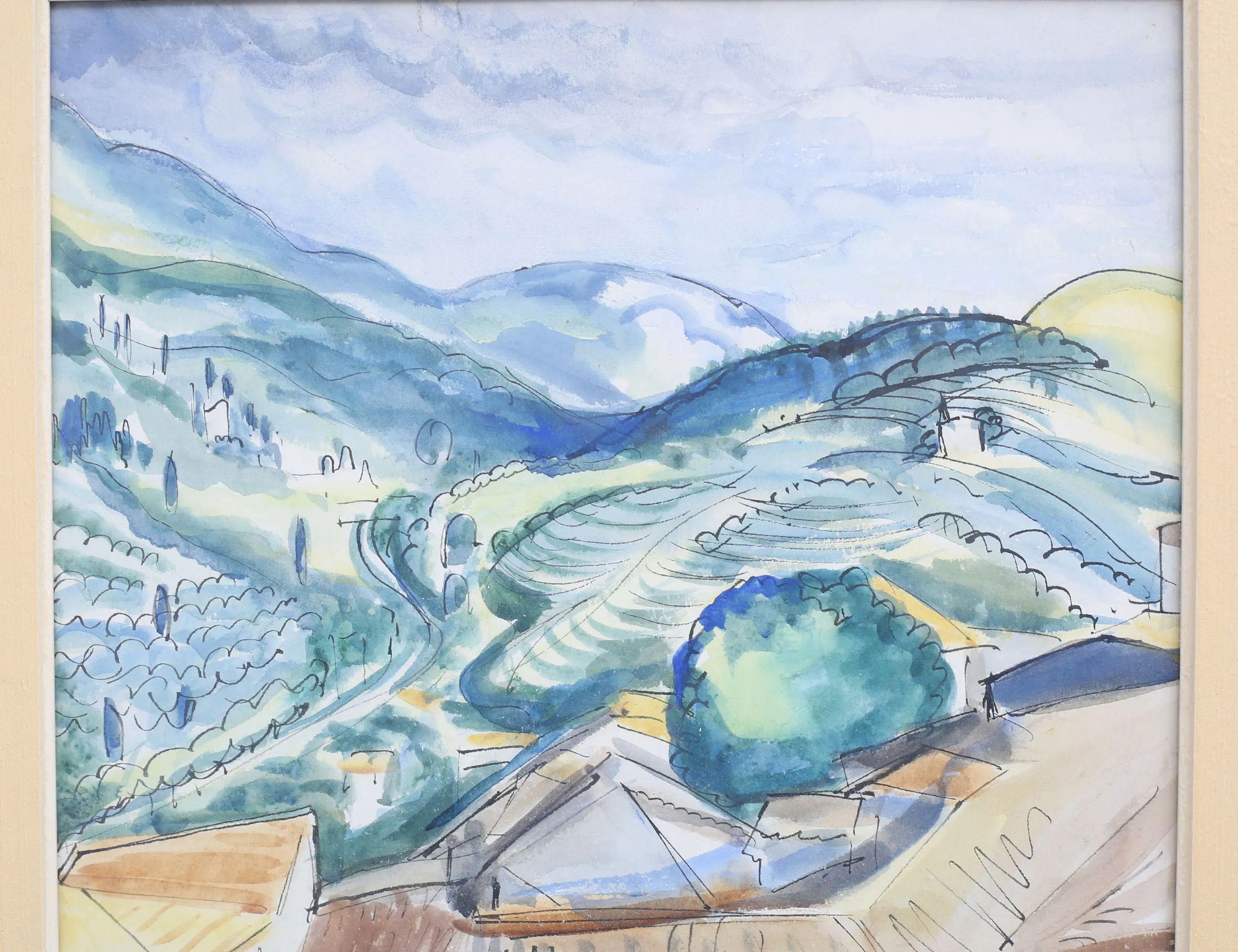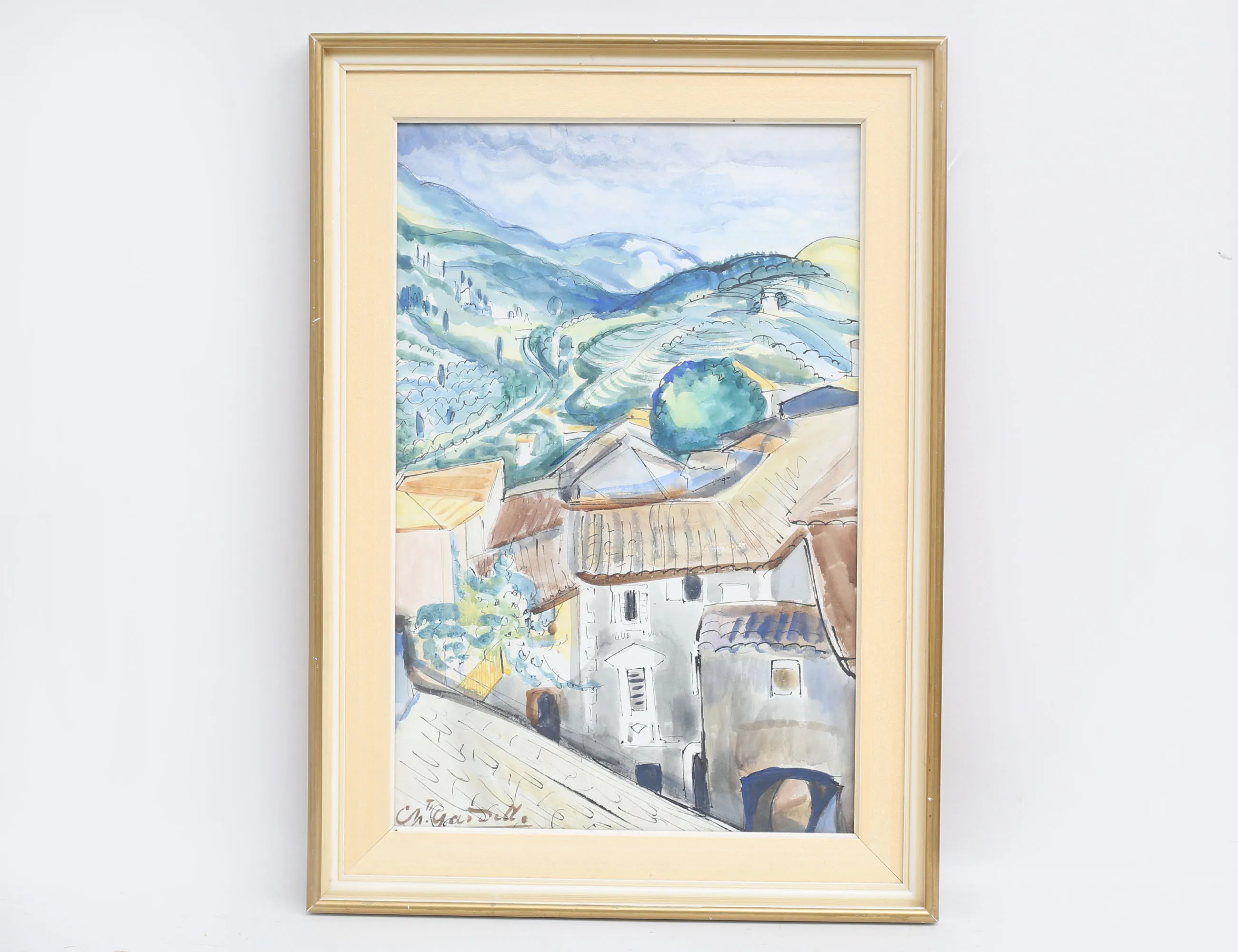 akvarell, by i Frankrike (?), signerad, 50x33, rammått 60x43