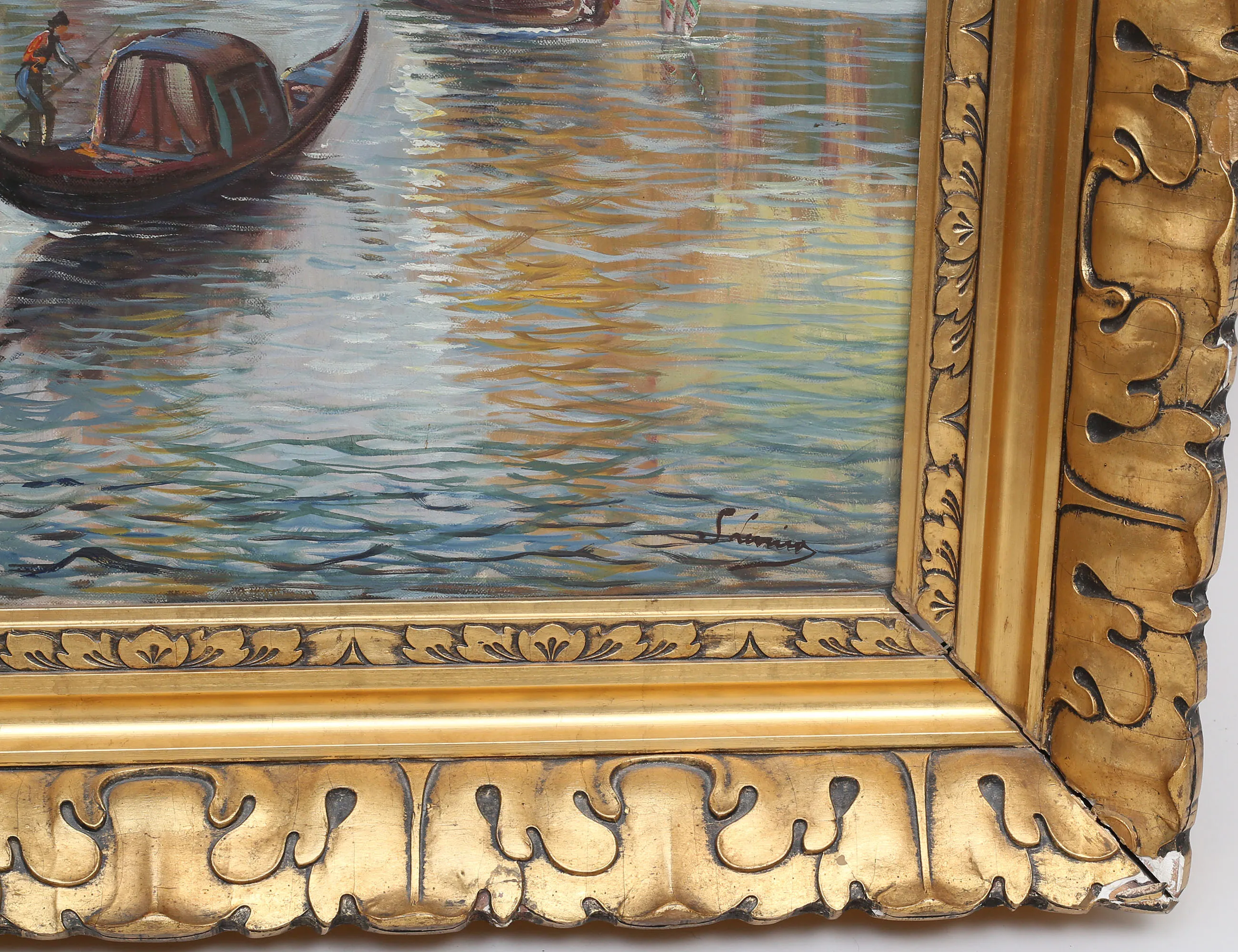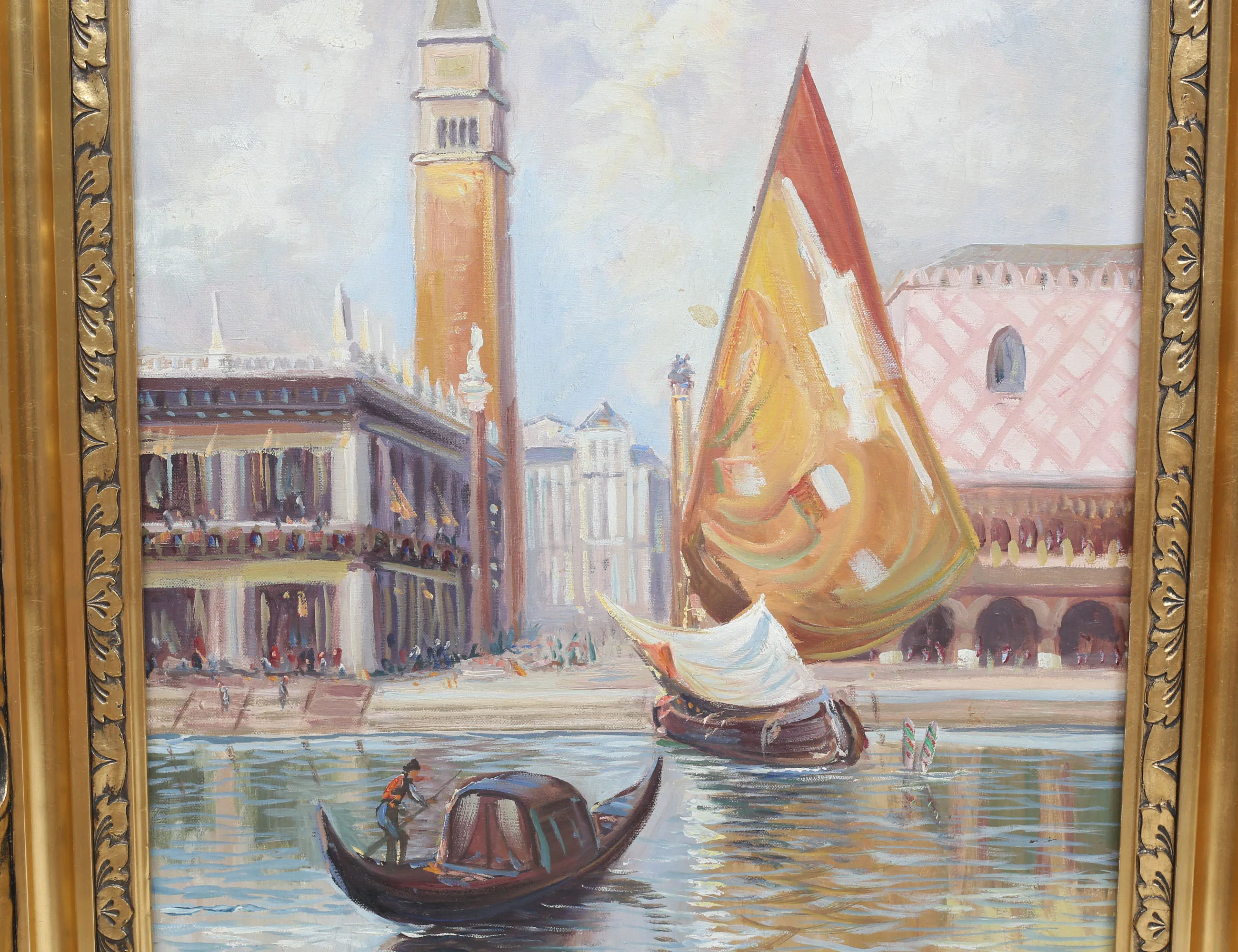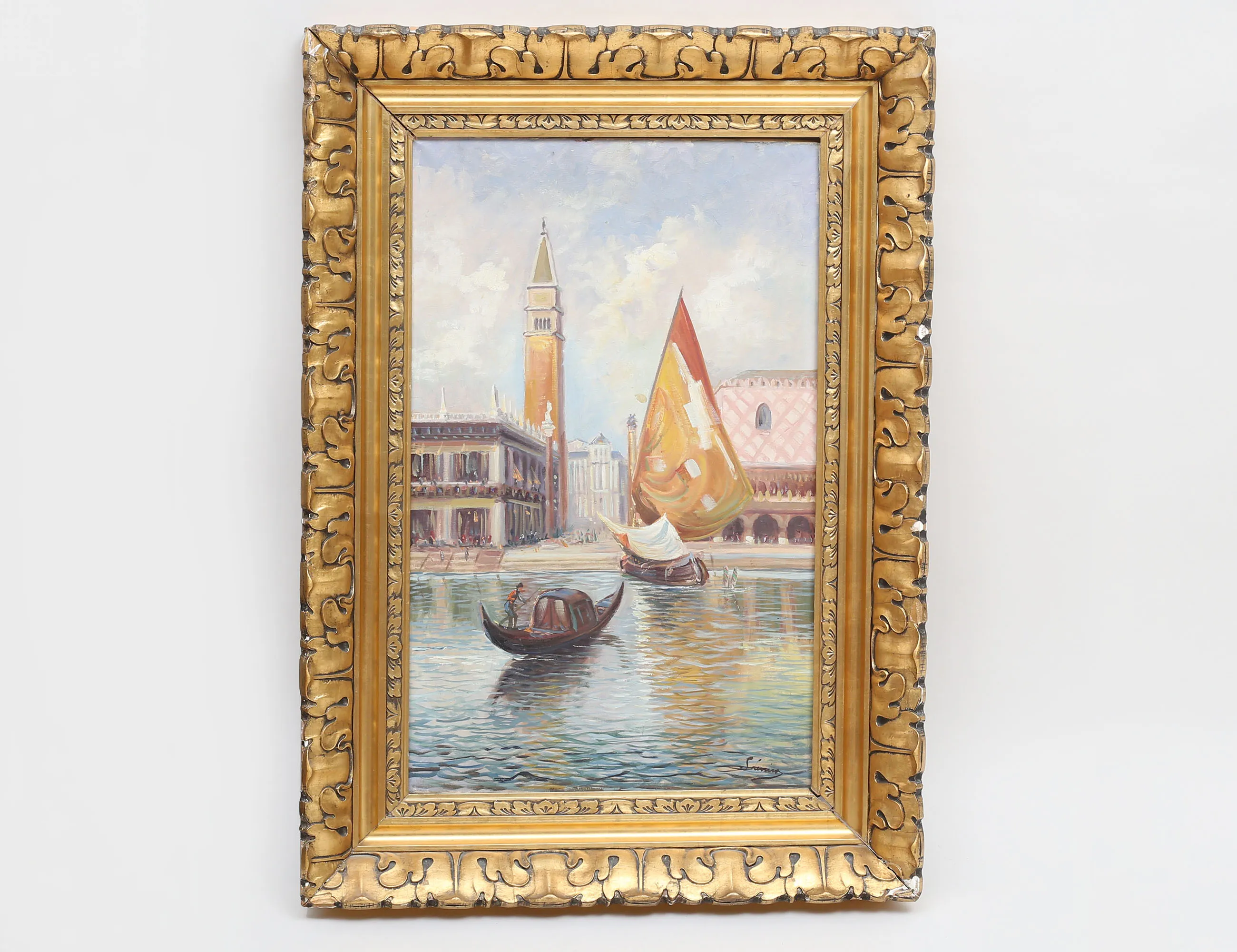 oljemålning på duk, motiv från Venedig, praktfull förgylld ram, signerad, 79x50, rammått 105x75 (ram med skador)