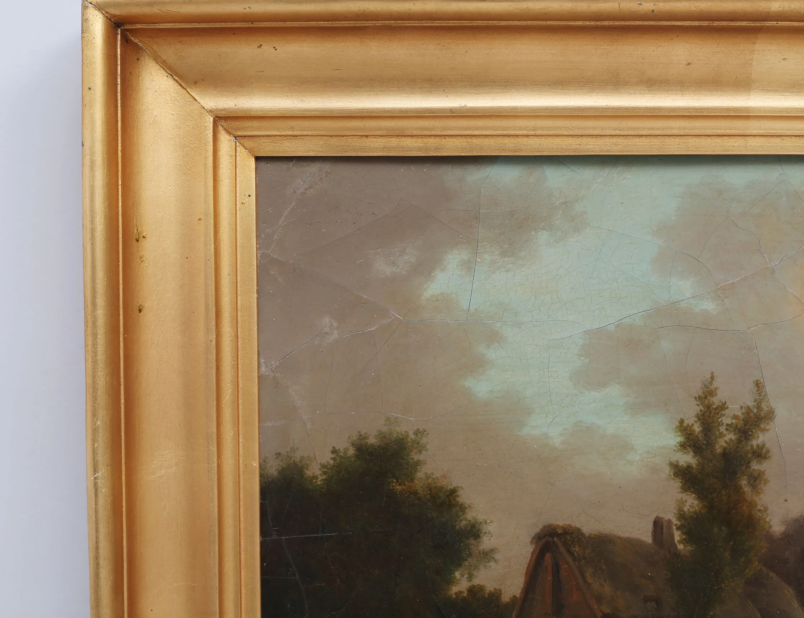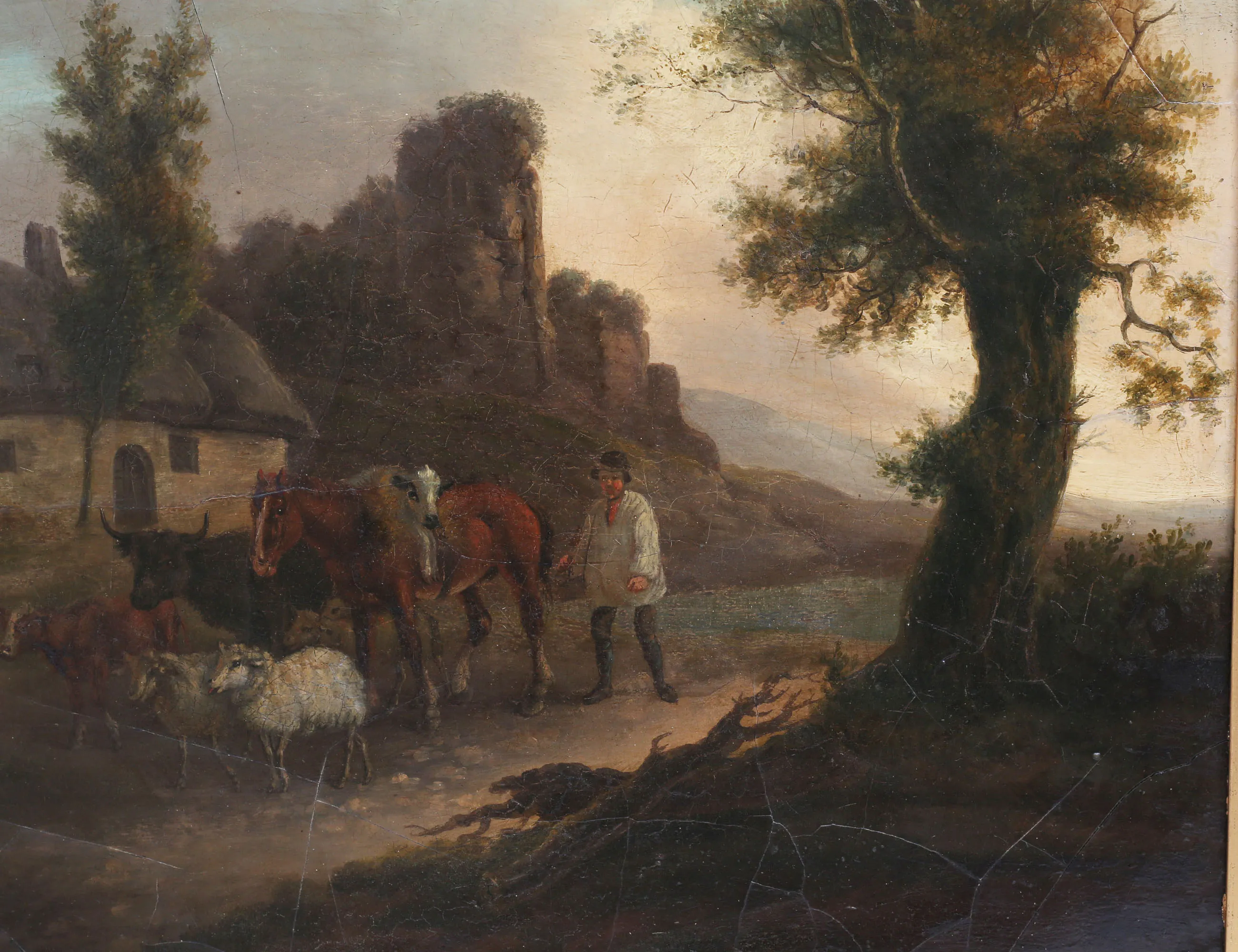 oljemålning på träpannå, man med häst och boskap, signerad, 46x59, rammått 59x74 (retuscher, krackelyrer)