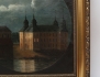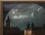 oljemålning på duk uppfodrad på pannå, Jakob de La Gardies palats Makalös (byggt 1630, nerbrunnet 1825) Kungsträdgåren Stockholm samt tornet av St Jakobs kyrka i månsken, 32x32, rammått 41x41( smärre färgbortfall, nålhål)