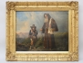 Mellaneuropa senempir 1800-tal, oljemålning på duk, flöjtspelande pojke och munk i bergslandskap, ursprunglig förgylld ram, 65x78, rammått 82x100