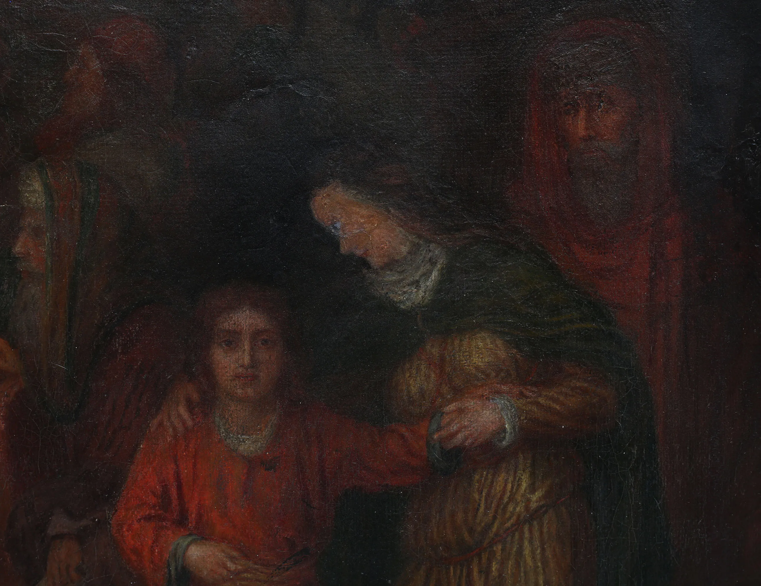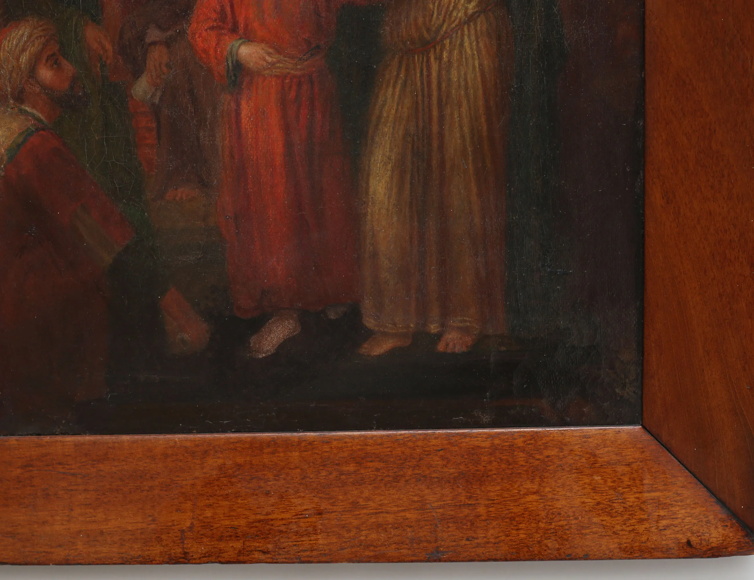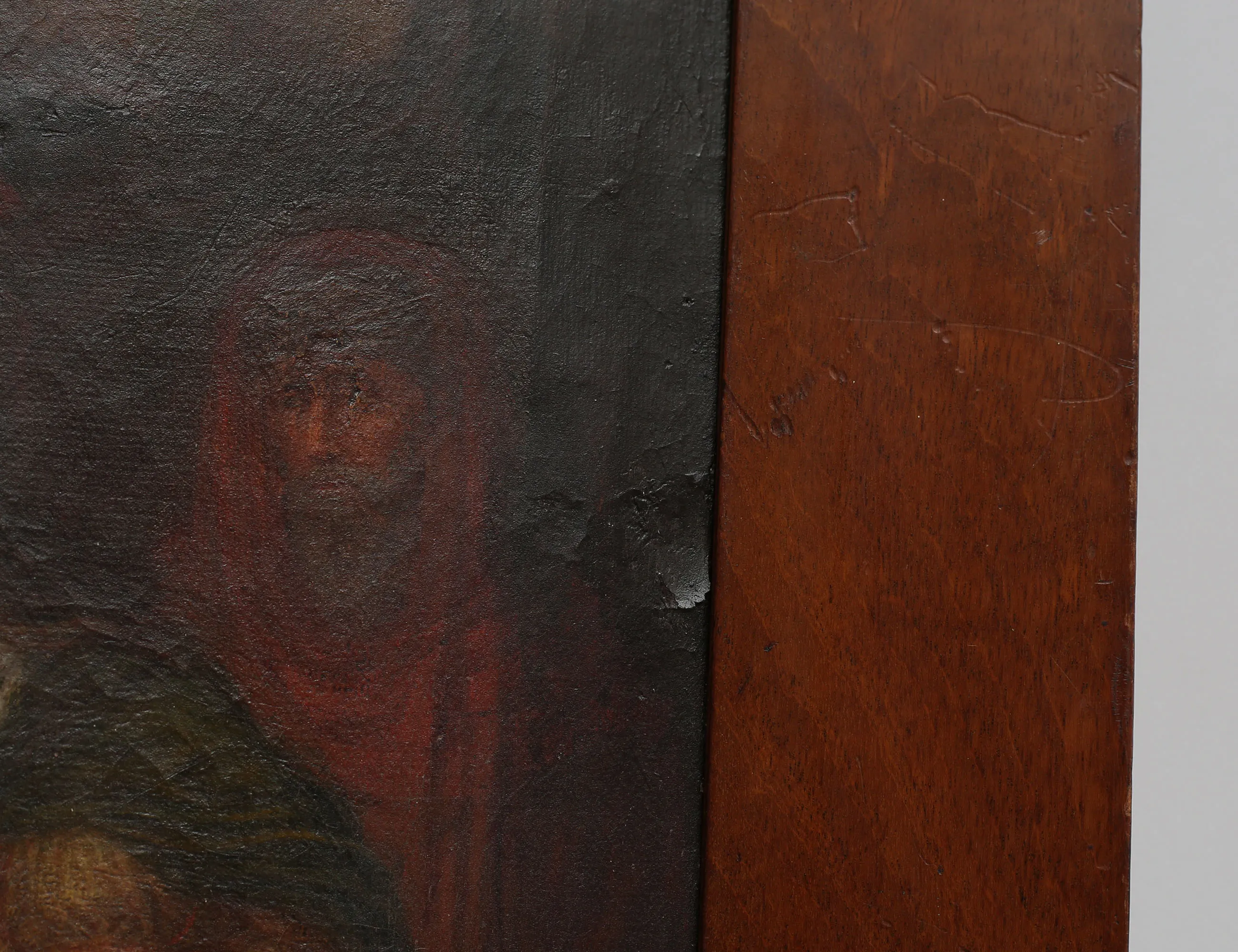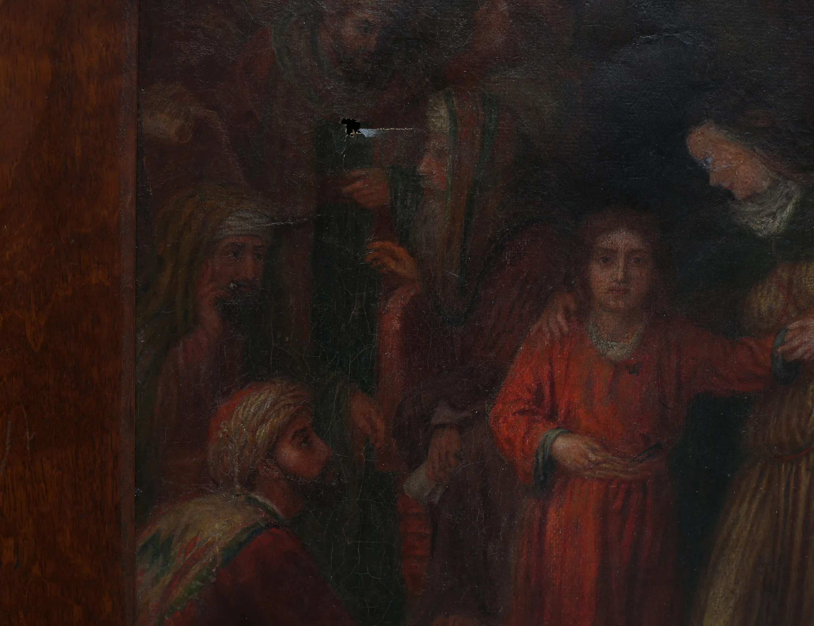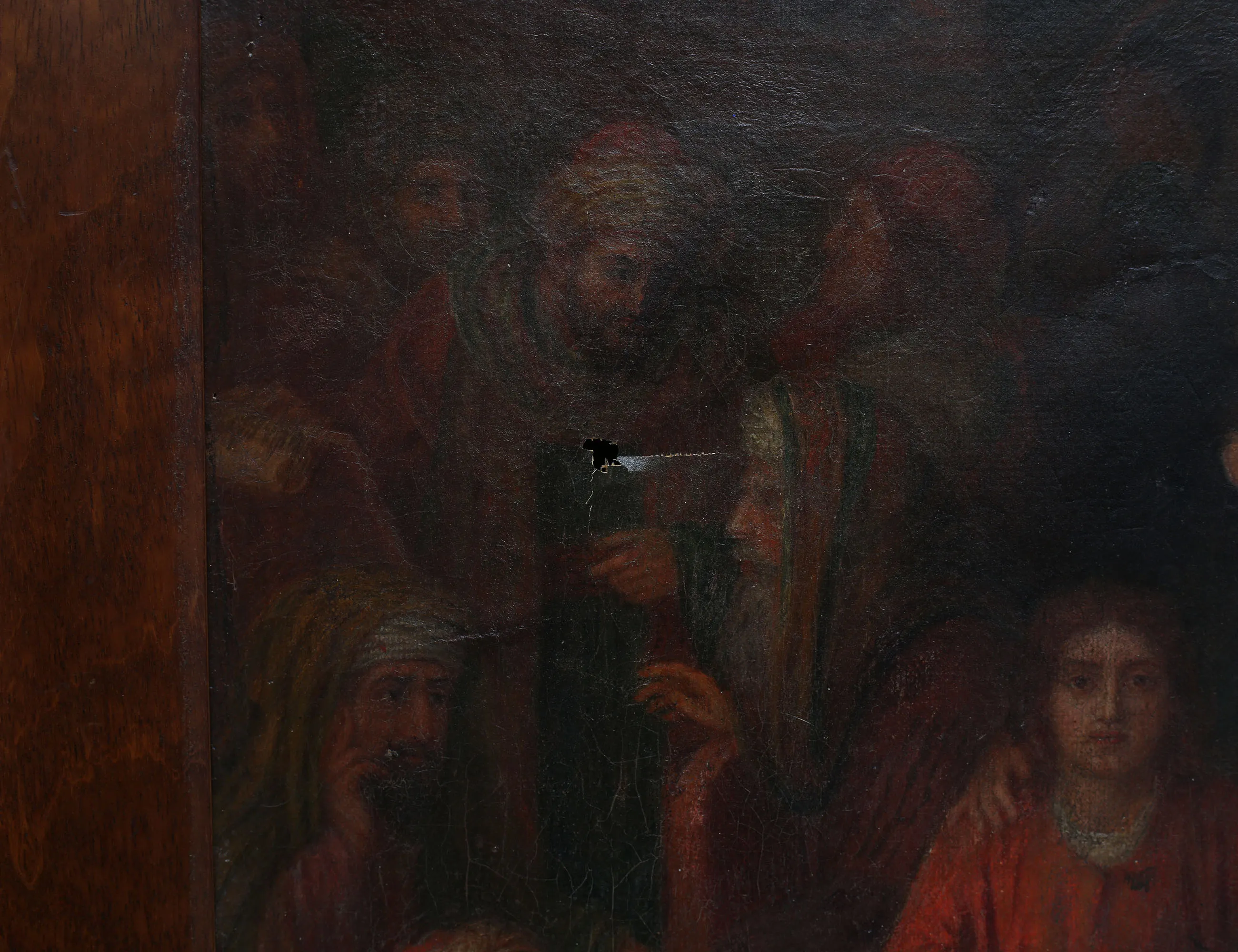 oljemålning på duk, Jesus i templet, samtida träram, 46x35, rammått 58x48 (krackelyrer, dukskada, duklagningar)