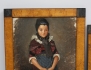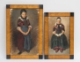 troligen Mellaneuropa, 1800-talets senare del, oljemålning på papper lagt på kartong, flickor i folkdräkt, samtida ramar, rammått 41x27, 35x22 (den större med hörnskada samt skada nederkant, den mindre med skada upptill, retuscher) (2)