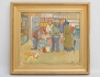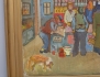 oljemålning på duk, handelsbod interiör med figurer och hund, signerad även atergo med historia, 41x45, rammått 54x61