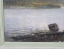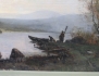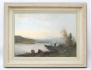 oljemålning på duk, sjölandskap med båt och människor, signerad 1872, atergo påskrift: Till mina älskade syskon David och Hildegard en liten julgåva från en tillgiven tacksam broder", 63x88, rammått 91x117 (krackelyr, färgbortfall)