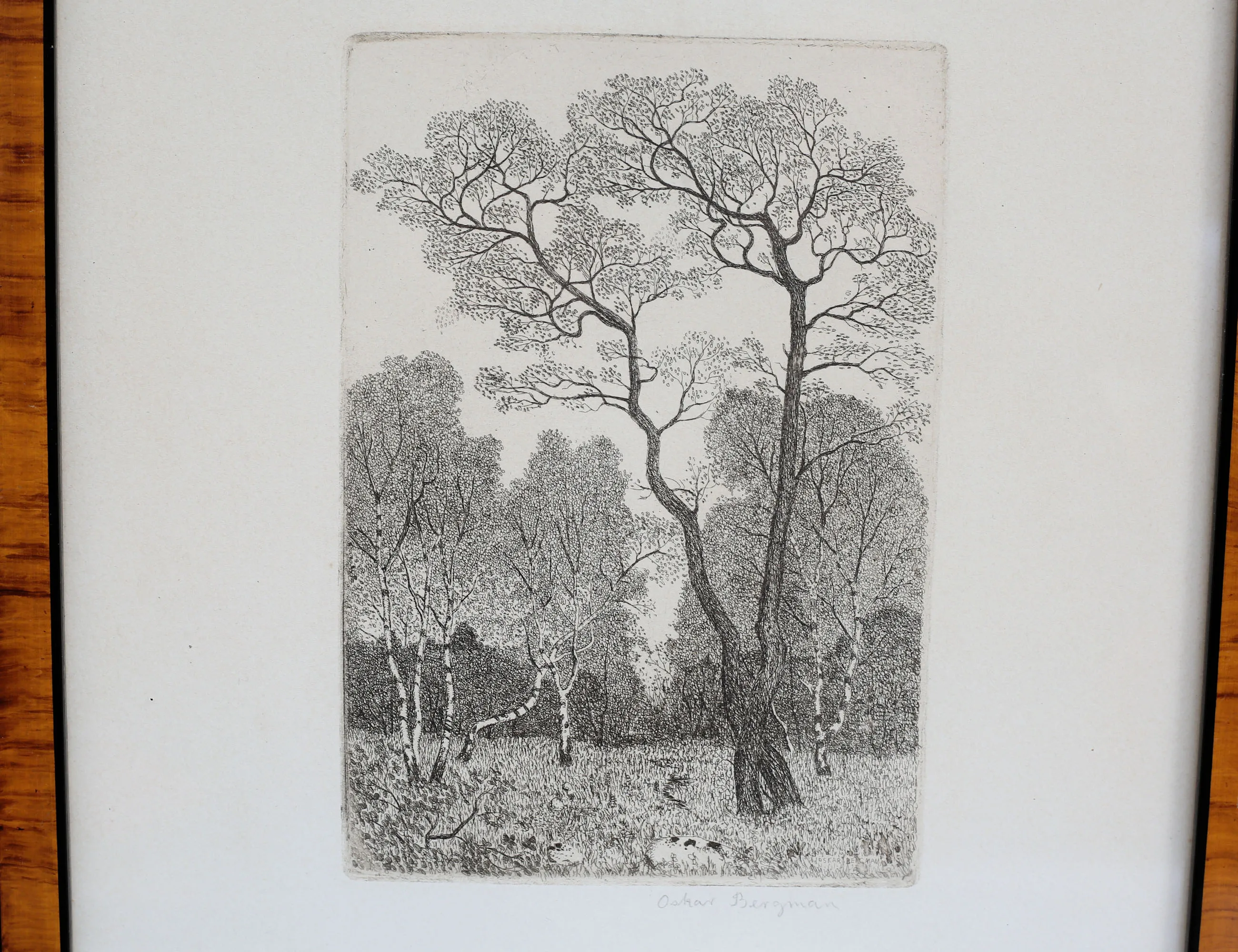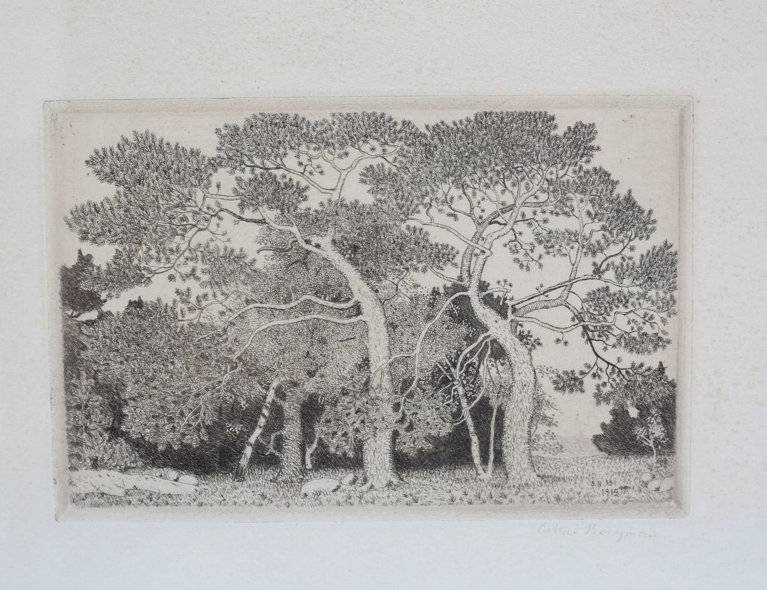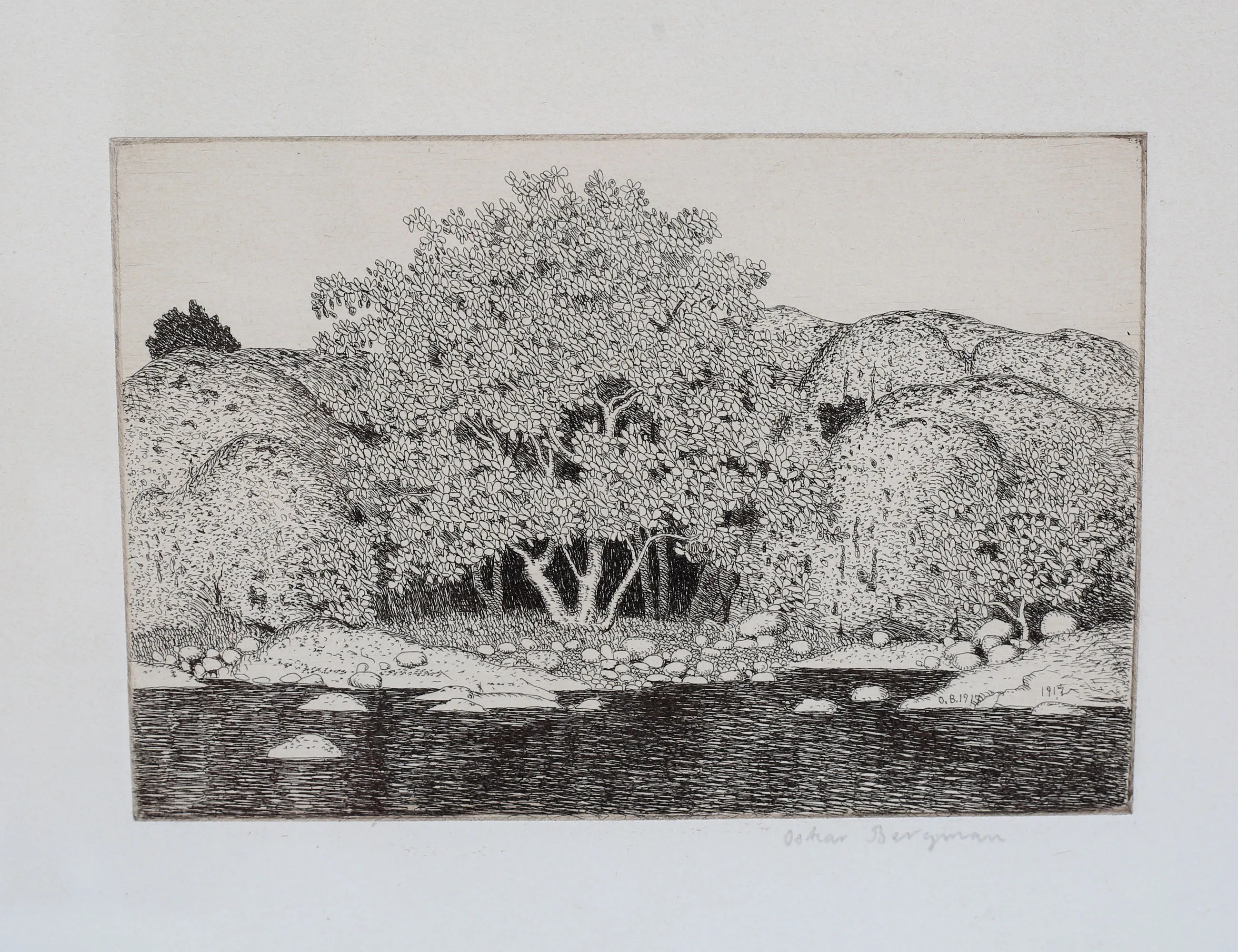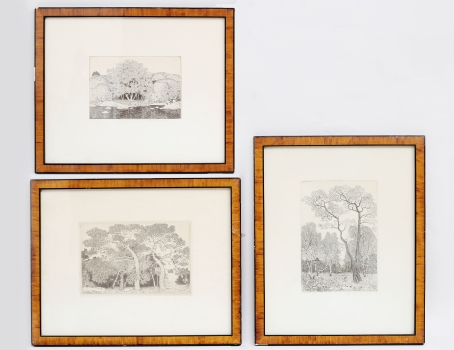 3 etsningar, landskapsmotiv, signerade med blyerts, plåtstorlek 9,5x14, 10,5x16,5, 17x11,5, rammått 32x26, 26x32