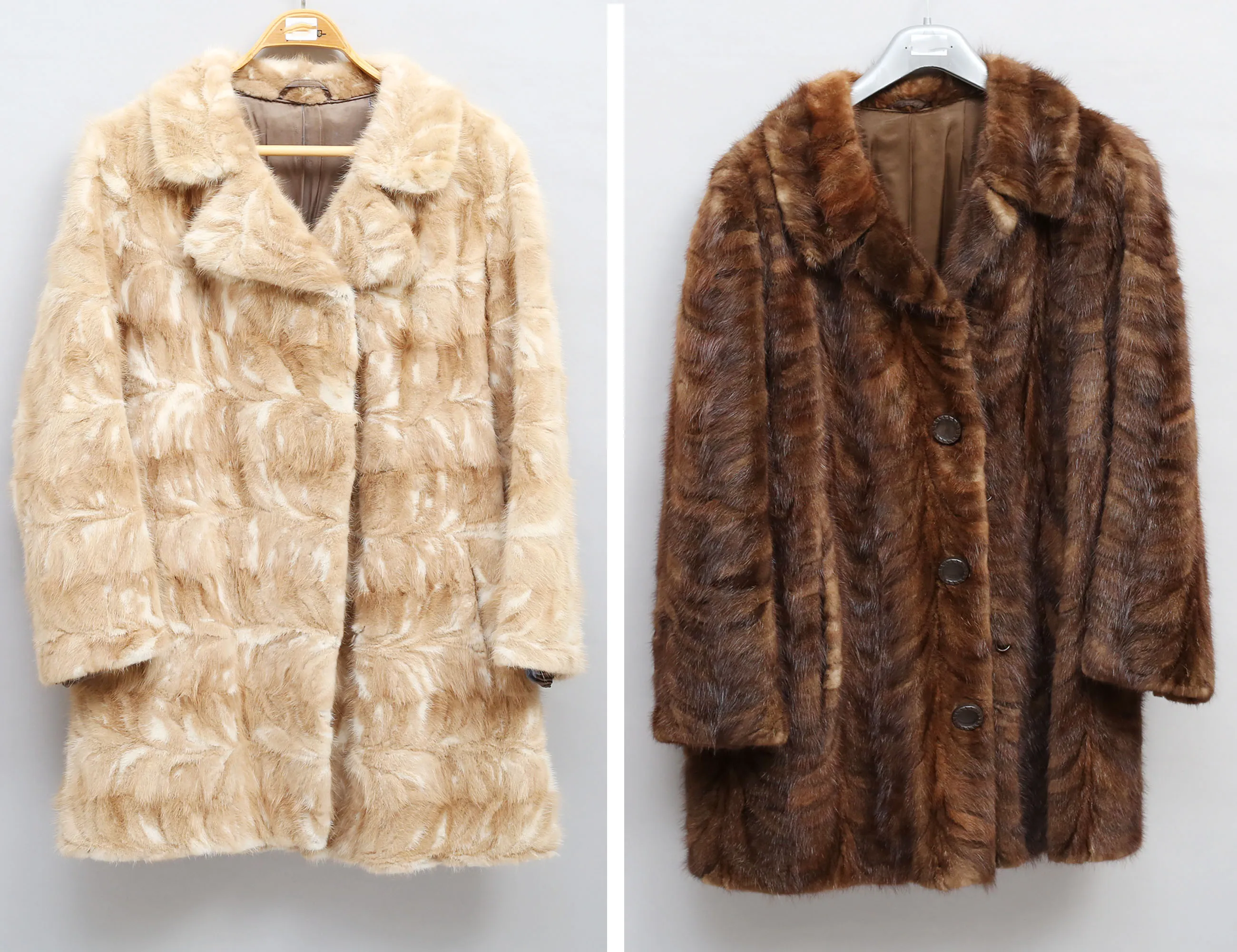 pastellmink - etikettmärkt Hellqvist & Dahl, intyg medföljer, storlek 38/40, rygglängd 82, brun mink storlek L, rygglängd 80 (en smärre bristning vid en ögla)
