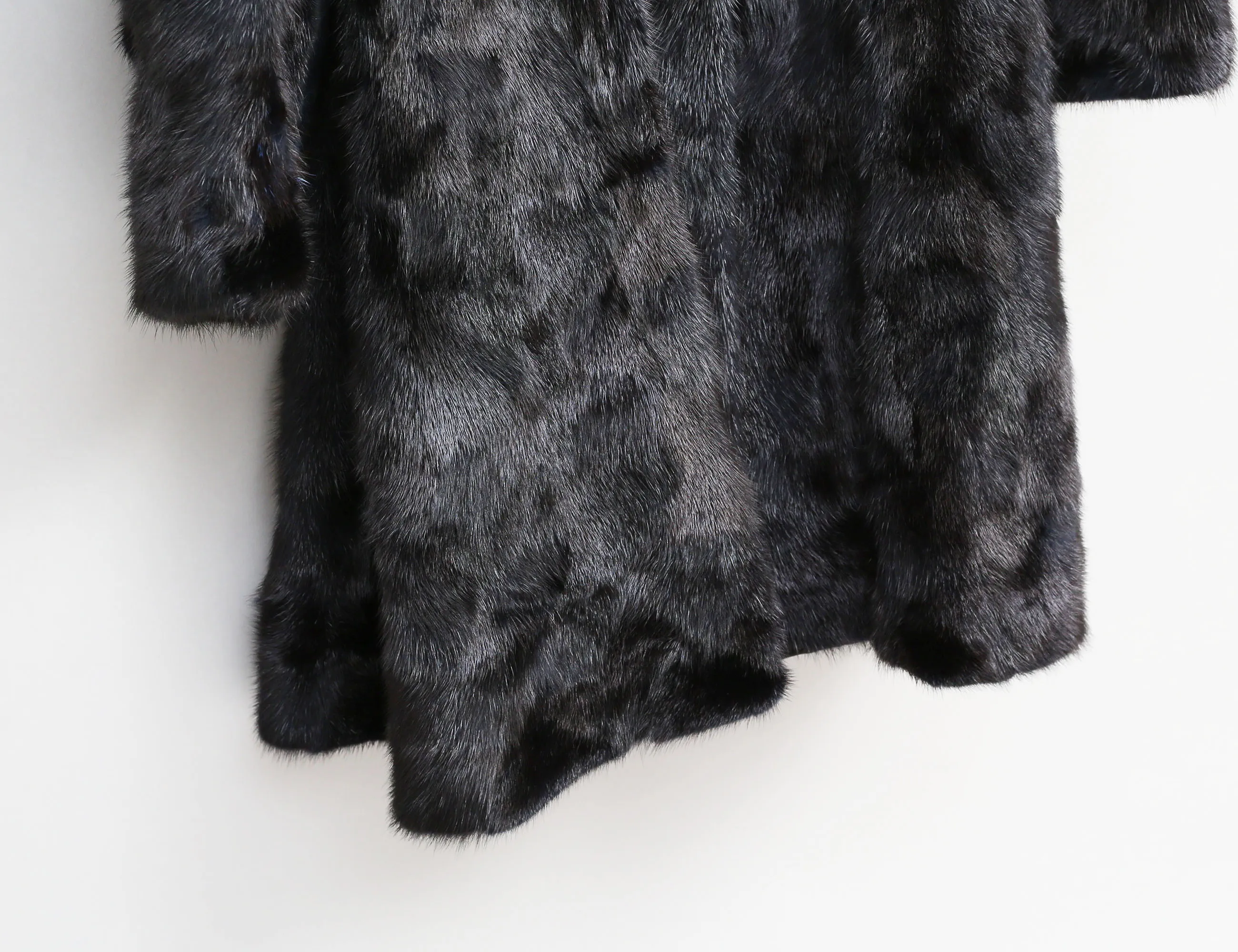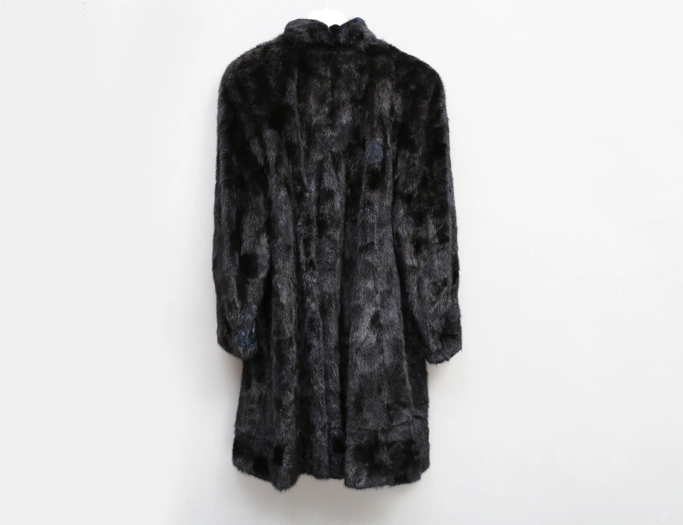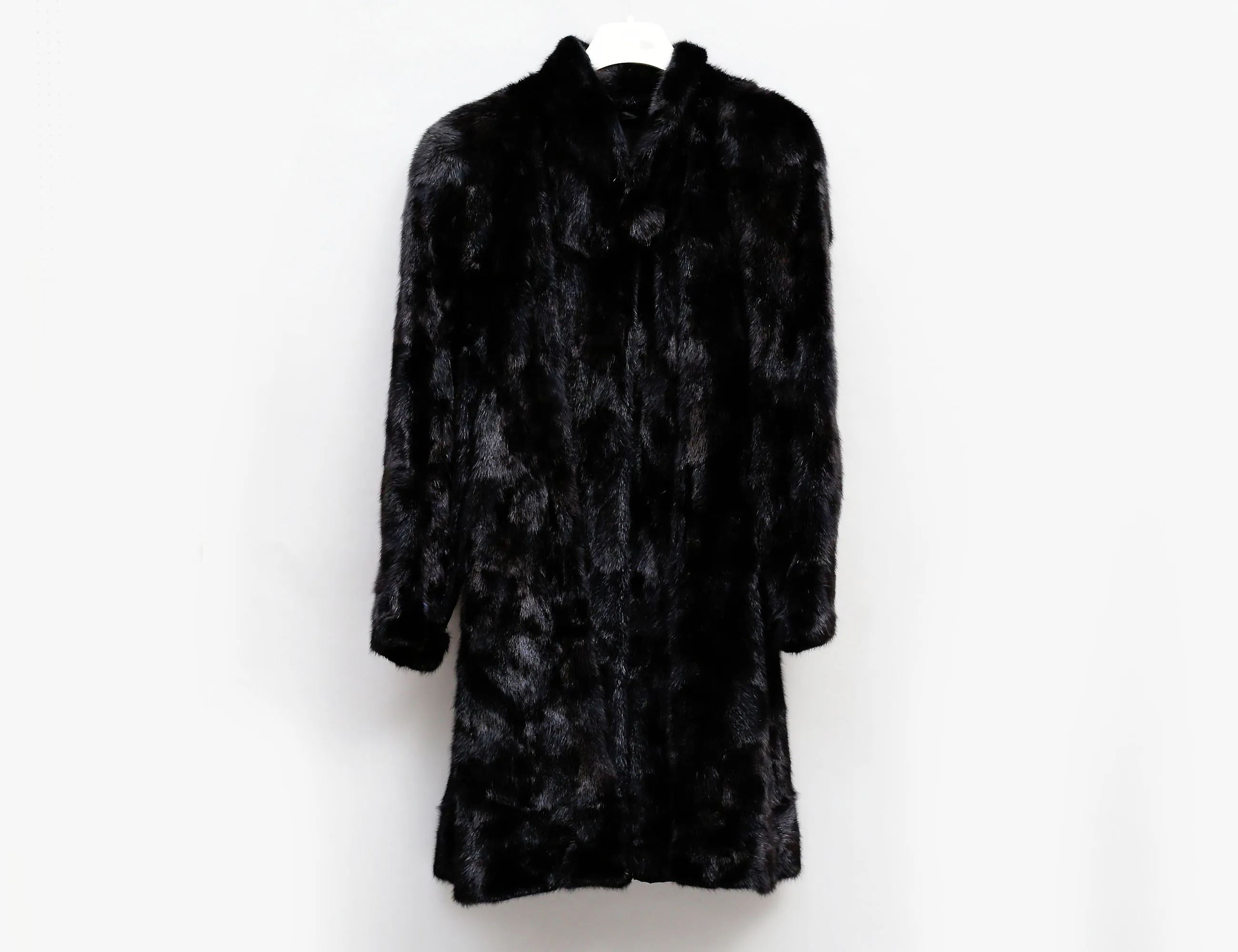 svart, trekvartslängd, swaggermodell, etikettmärkt Pani Päls Paul Nilsson, rygglängd 96, innerärm 38, passar M/L