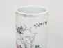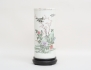 troligen sen Qing dynasti, polykrom ekor av fåglar och växter, skrivtecken, träsockel, höjd 28 (32) (bottenring med tillverkningsdefekt, mynning med slitage på gulddekor)