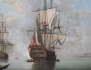 oljemålning på duk uppfodrad, kungliga segelfartyg på redden, atergo etiketter, 76x102, rammått 94x120
