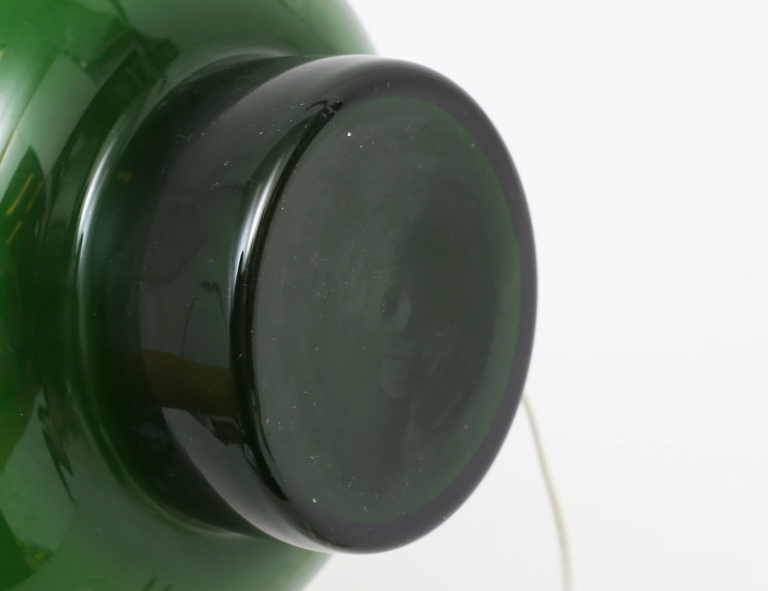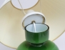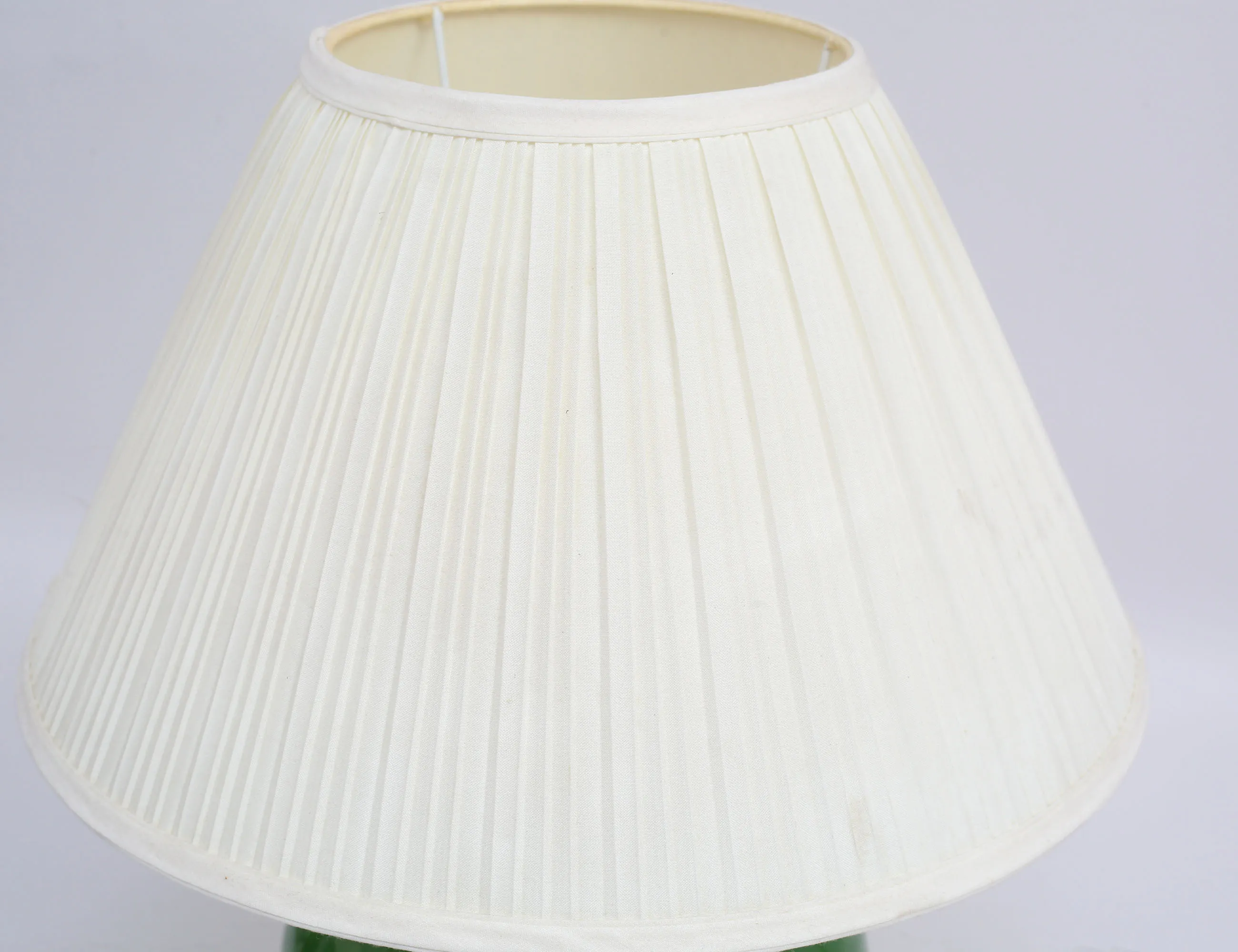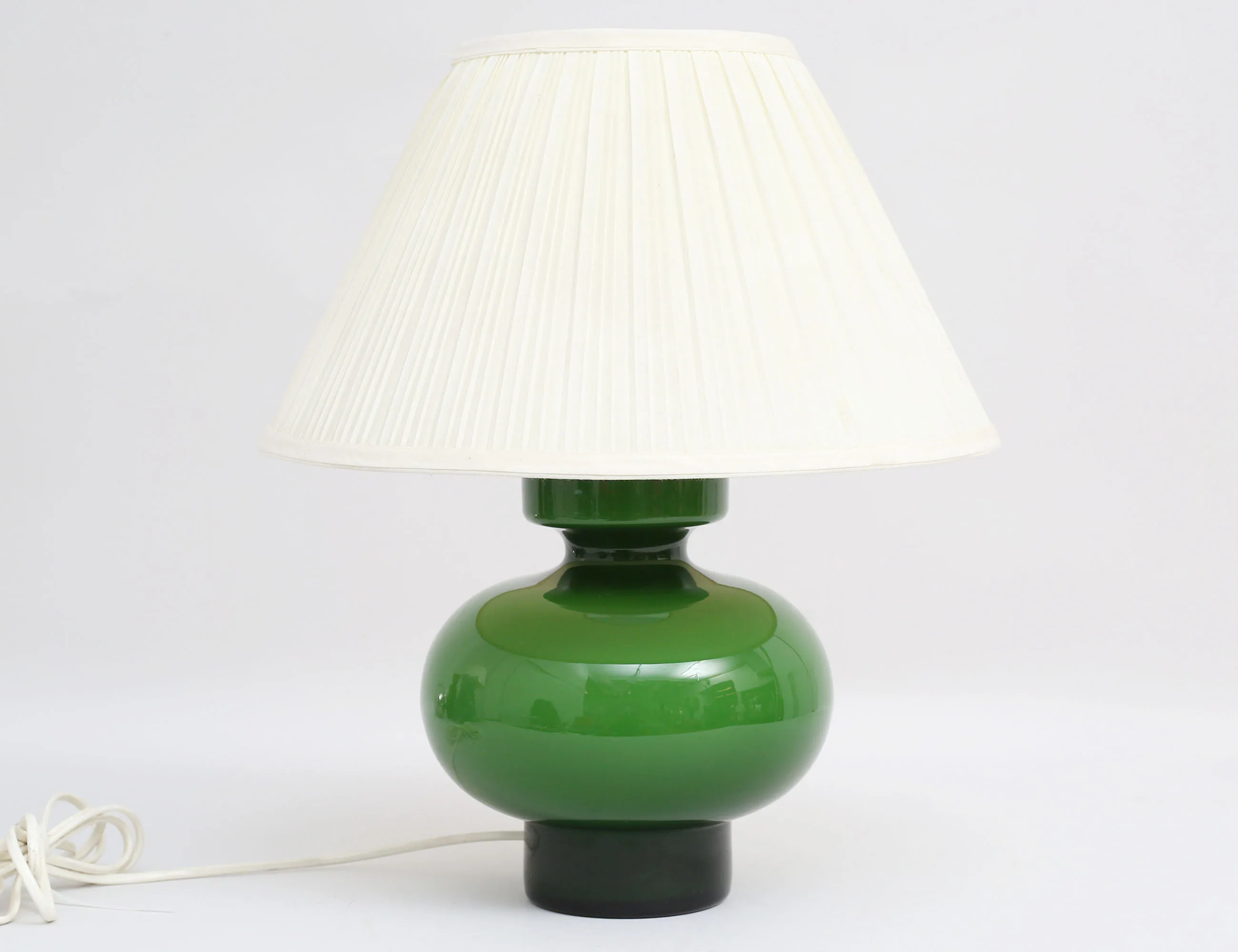 bordslampa 1960-tal, grönt glas, plisserad textilskärm, höjd 30 (42)