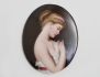 oval porslinsmålning, troligen Tyskland, etikettmärkt E&G PLM, ram i ben och mässing, 8,5x6,5, rammått 14x12