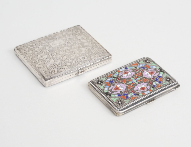 svenska importstämplar, invändig spegel, 8x7, etui art deco, nysilver och emalj, 8x5,5 (undersida med inskription) (2)
