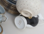 teservisdelar 16 stycken "Grand", Arthur Percy Gefle/UE, 3 figuriner ugglor, Edward Lindahl Gustavsberg, stengods, höjd 5-7, skål stengods, Gunnar Nylund Rörstrand, höjd 8, längd 16, figurin gitarrspelare, höjd 27 m.m. (lagad "Malin" Lisa Larson och naggad vas medföljer)