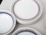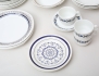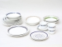 6 tallrikar "Bimbo" Rörstrand, diameter 24, 5 servisdelar "Smide", Upsala Ekeby, 3 tallrikar "Atos" Gefle, diameter 24 (en med smärre nagg), 3 djupa tallrikar "Tulpan" Gefle, 3 assietter "Aurora" Gefle, 3 tekoppar med fat "Blåvinge" Rörstrand, karott "Ring" UE