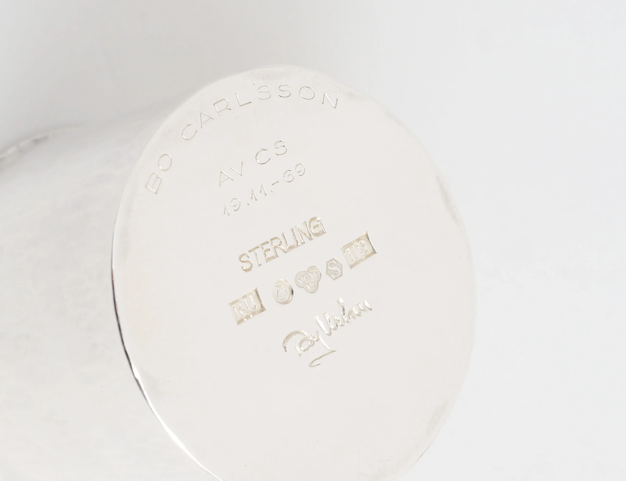 signerad 1969, botten med inskription, vikt 153 gram, höjd 5,5, diameter 6,5