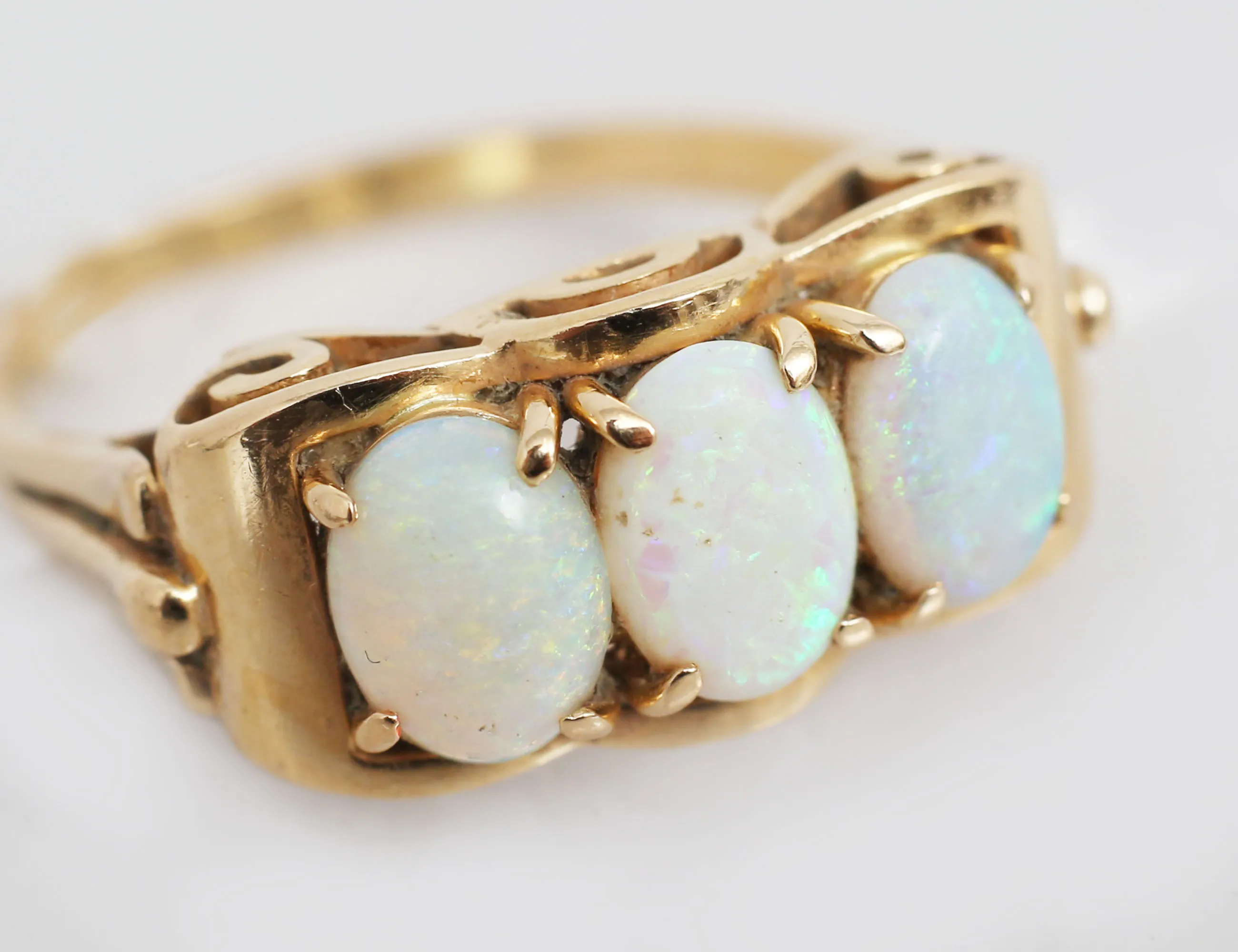 cabuchonslipade homogena opaler (3), 7,5mm. vardera, stämplad 765, svensk importstämpel, storlek 19,5/60, vikt 5,05 gram