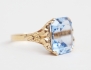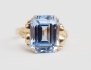 med syntetisk trappstegsslipad akvamarin, stämplad 3G Göteborg 1947, storlek 19-19,5/60-61 (stenen med stötskada och slitage)