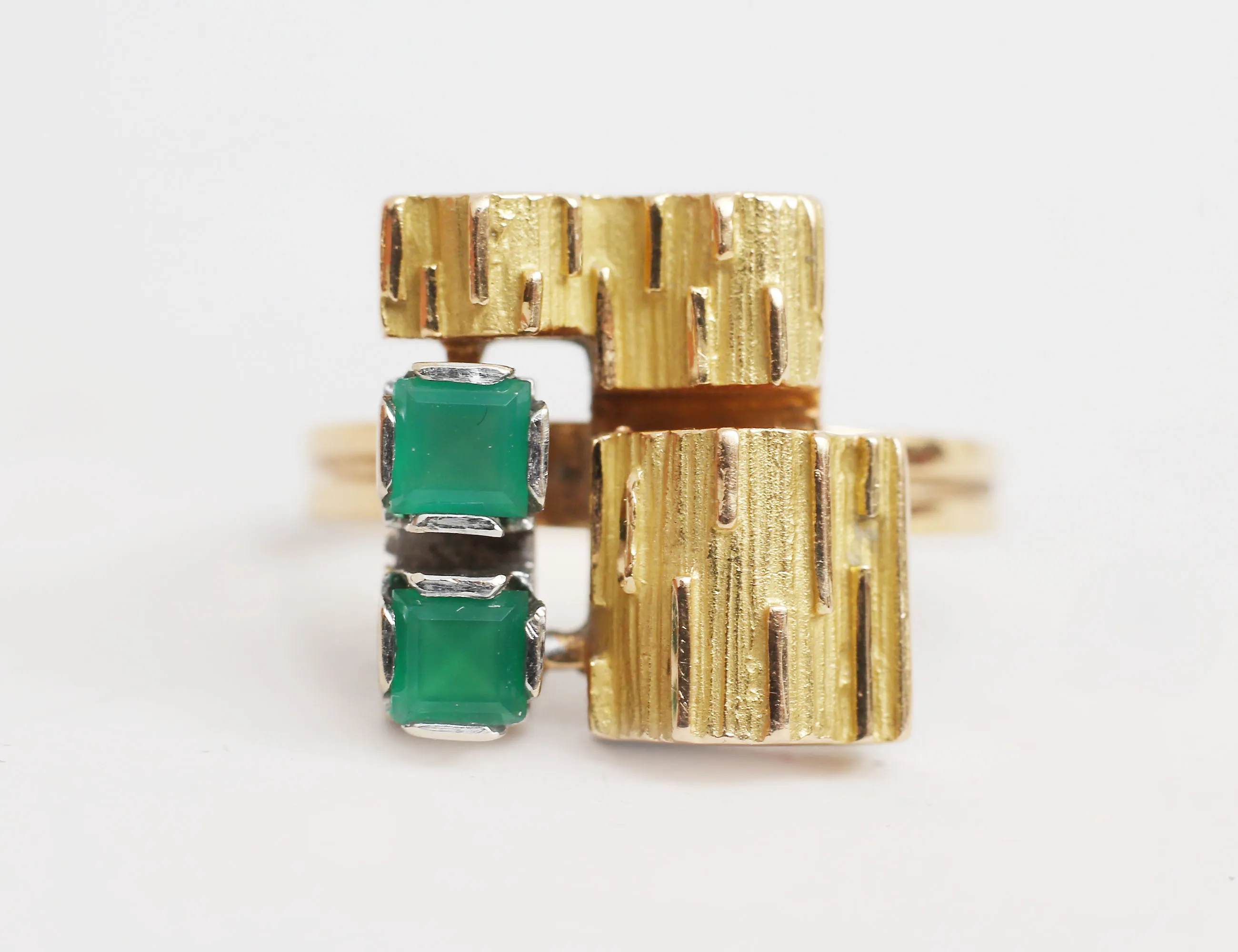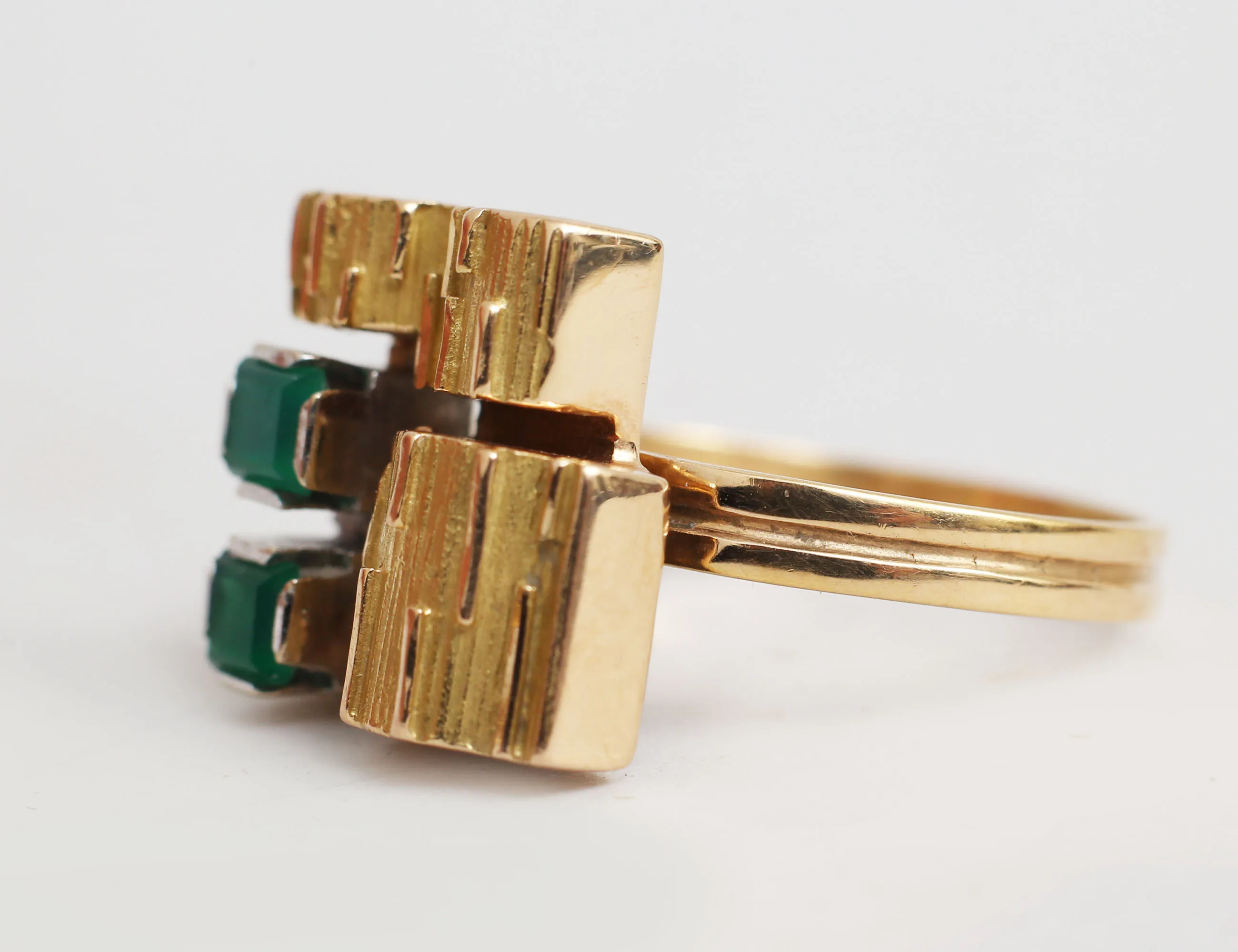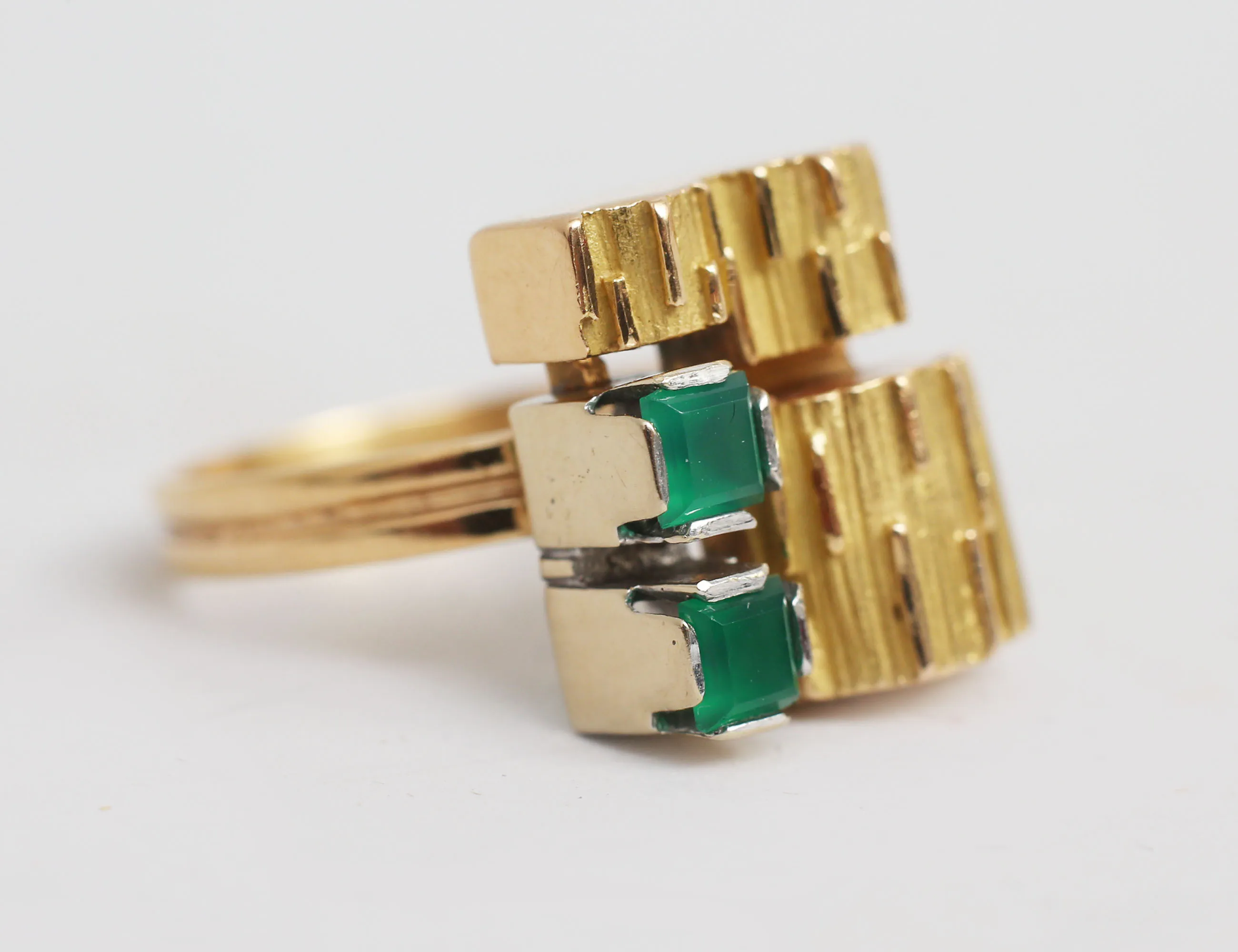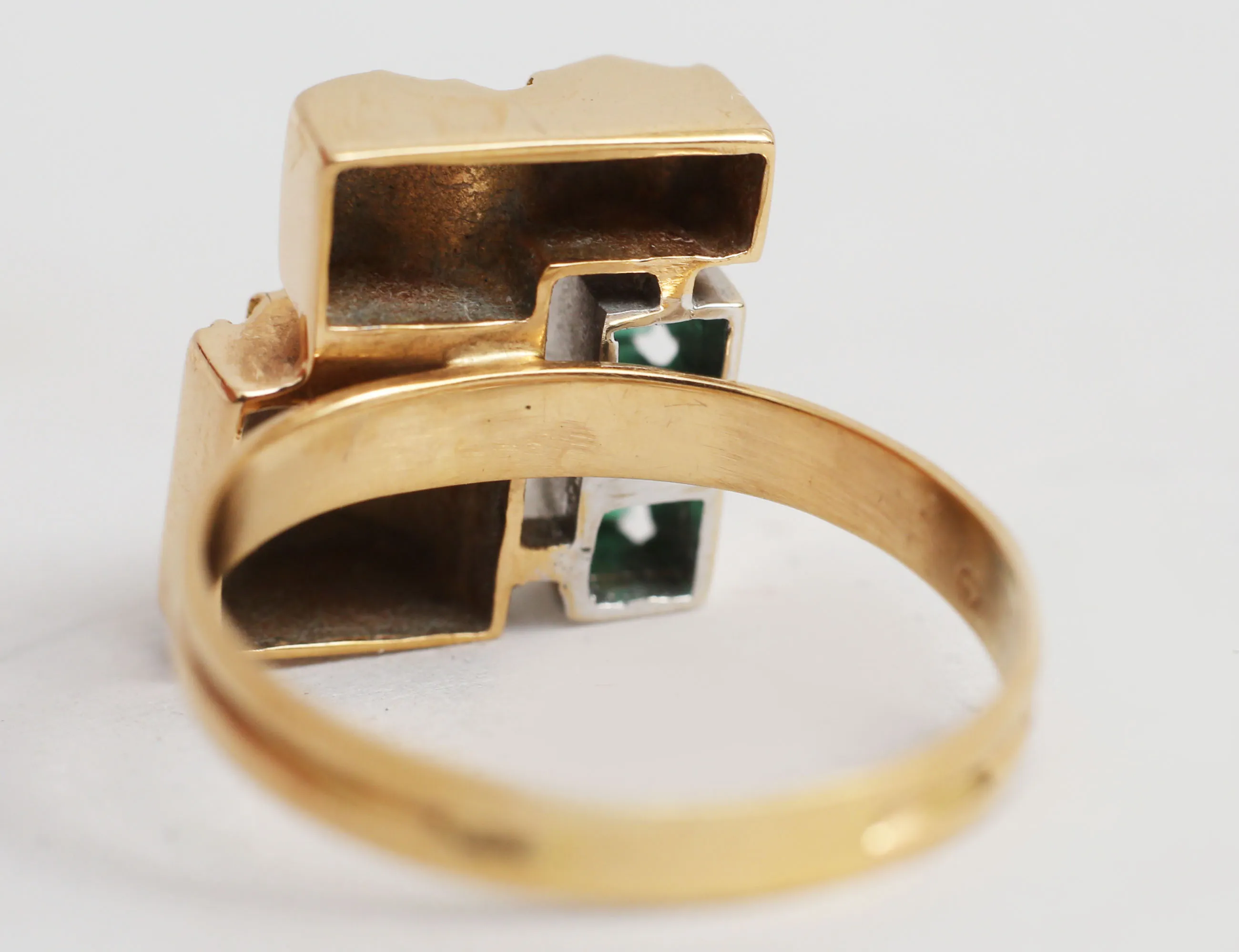modern design, trappstegsslipade smaragder (2), fattade i vitguld, svensk importstämpel, vikt 5,19 gram, storlek 18,5-19/59