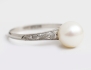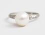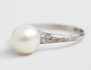 odlad saltvattenspärla diameter 7,5mm., troligen asiatiska/kinesiska stämplar, skenan med graverad dekor, storlek 17/53